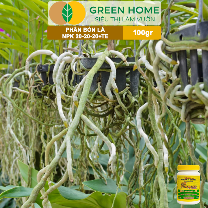 ✨Phân Bón Lá Grow More NPK 20-20-20, GreenHome, Chai 100GR, To Củ, Lớn Trái, Chắc Hạt
