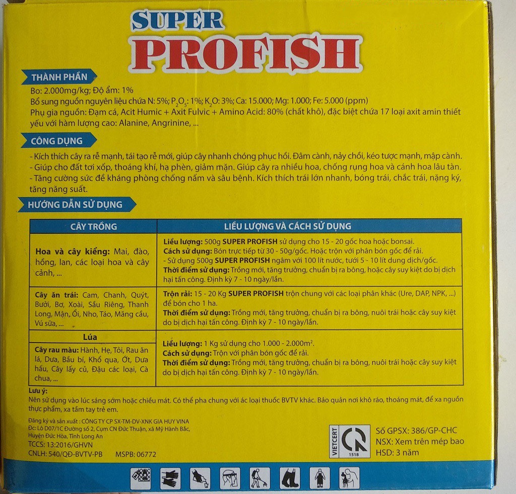 - Liều lượng: 500gr super Profish sử dụng cho 15 – 20 gốc hoa hoặc bon sai