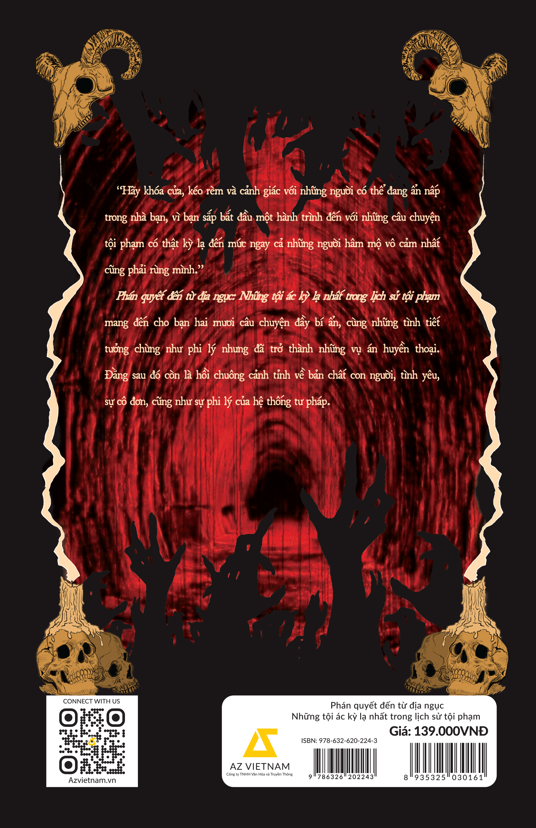 Bạn có nghĩ mình đã biết về tất cả những tội ác ghê rợn nhất? Bạn có còn rùng mình trước những câu chuyện về Ted Bundy hay Jeffrey Dahmer? Hay những con quỷ đội lốt người đã trở nên quá đỗi quen thuộc, thậm chí nhàm chán? Nếu câu trả lời là CÓ, thì hãy chuẩn bị tinh thần cho một hành trình xuyên qua những vụ án kinh hoàng, quái dị và thách thức mọi giới hạn của trí tưởng tượng. Phán quyết đến từ địa ngục là tuyển tập 20 vụ án có thật, kỳ lạ và gây sốc, khiến ngay cả tín đồ Tội phạm học chai sạn nhất cũng phải rùng mình. Từ người đàn ông bệnh hoạn sống cùng xác chết suốt 7 năm, một “bóng ma ác độc” sống trong tường nhà, linh hồn oan khuất quay lại báo án, những kẻ ăn thịt người đau đáu tìm con mồi hay vị pháp sư sát hại phụ nữ để uống… nước bọt của họ, bạn sẽ được khám phá những động cơ bệnh hoạn, những âm mưu tinh vi và cả những sai lầm chết người của hệ thống pháp luật. “Tòa án đã giải quyết vấn đề về sự tồn tại của Chúa. Bây giờ họ sẽ phải giải quyết vấn đề về sự tồn tại của Ác quỷ.” Mỗi chương sách được kể một cách lôi cuốn, chi tiết và đầy kịch tính. Phán quyết đến từ địa ngục đưa độc giả khám phá những góc tối nhất của tâm trí con người, nơi tình yêu, sự cô đơn, nỗi sợ hãi và sự phi lý của hệ thống tư pháp hòa quyện tạo nên những bi kịch không tưởng. Chúng ta không chỉ được thỏa mãn được sự tò mò về các vụ án kỳ lạ mà có cơ hội đối diện với những nỗi sợ hãi nguyên thủy nhất: cái chết, sự mất mát, và khả năng tồn tại của cái ác trong xã hội.