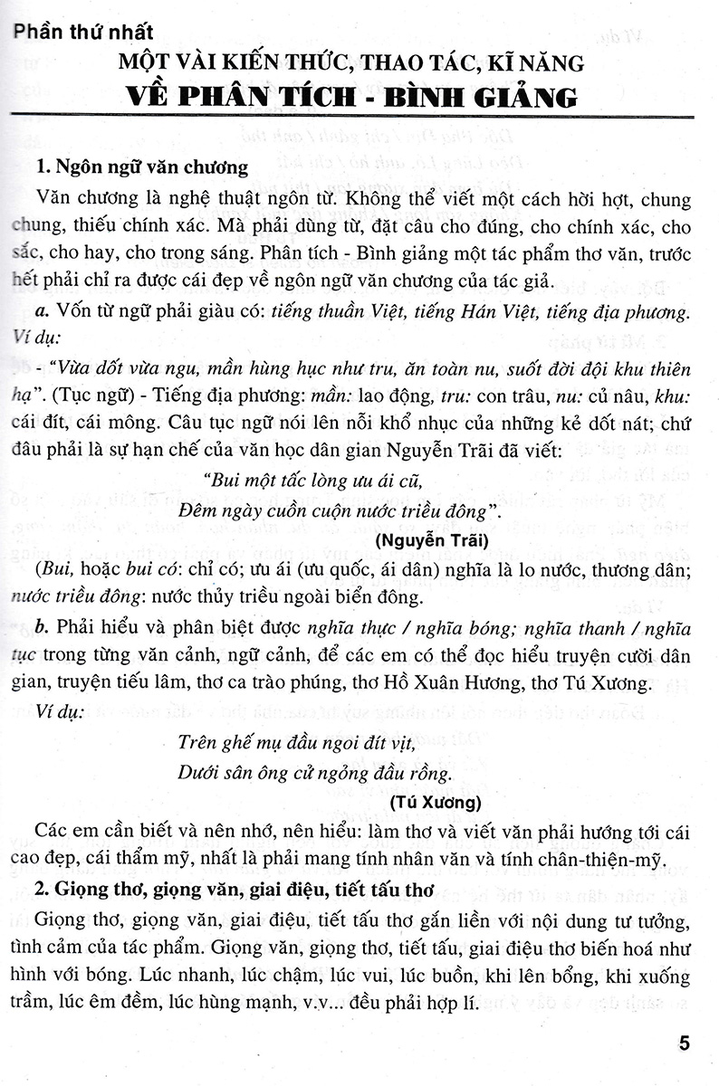 Phần mở đầu giới thiệu khái quát về kiến thức và những kĩ năng, thao tác về phân tích - bình giảng thơ văn. Đây là những kiến thức cơ bản giúp các em hiểu để học và hành, để làm tốt các bài tập làm văn cảm thụ văn học (nghị luận văn chương).