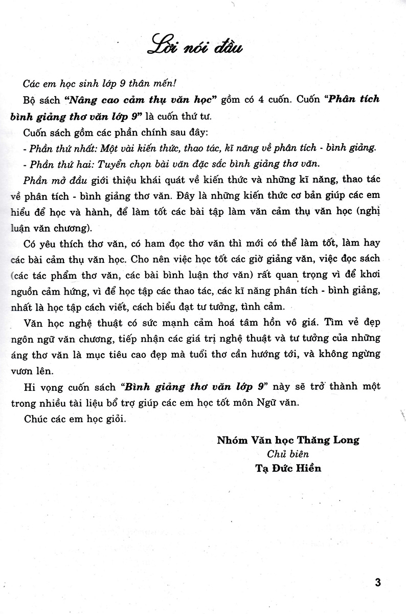 Hi vọng cuốn sách Phân Tích Bình Giảng Thơ Văn Lớp 9 này sẽ trở thành một trong nhiều tài liệu bổ trợ giúp các em học tốt môn Ngữ văn. Chúc các em học giỏi.