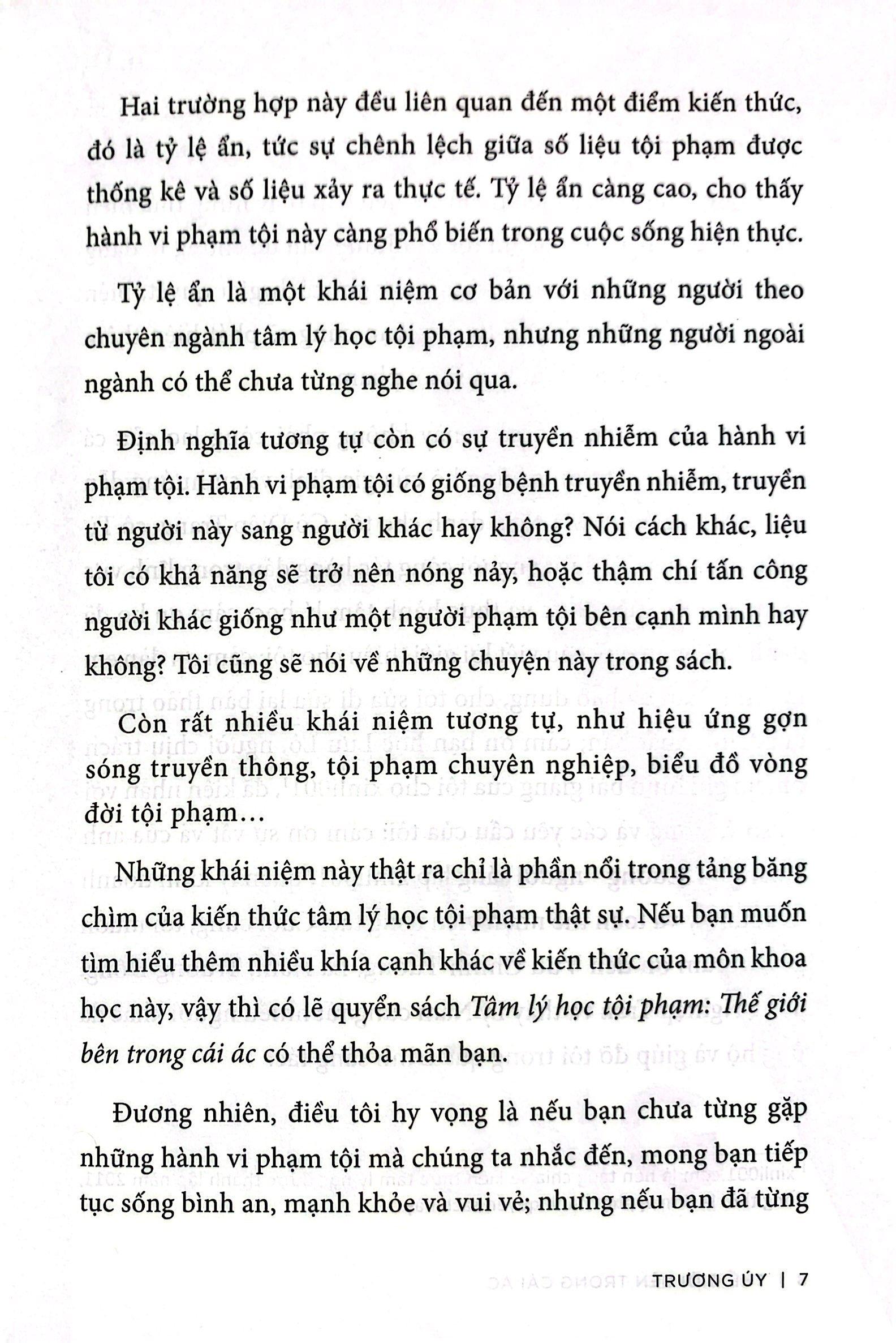 Với sự phân tích chi tiết và chuyên sâu về tâm lý học tội phạm của một cố vấn tâm lý cấp quốc gia, cuốn sách "Thế giới bên trong cái ác" sẽ là một tài liệu hữu ích cho những ai quan tâm đến tội phạm và muốn hiểu sâu hơn về tâm lý của những người phạm tội.