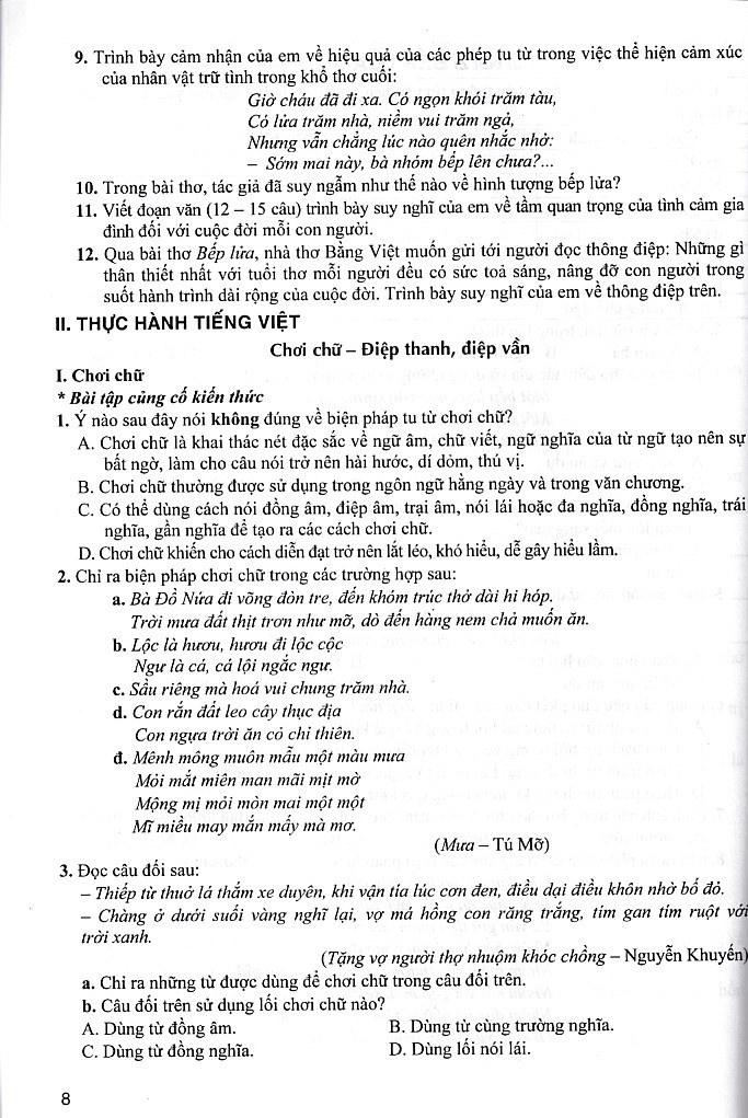 Cuốn sách này được biên soạn bám sát mục tiêu cần đạt của chương trình ngữ văn và hệ thống văn bản theo thể loại của bộ sách giáo khoa Chân trời sáng tạo cũng như định hướng về kiểm tra, đánh giá năng lực Cấu trúc: 10 đơn vị bài học, mỗi bài học gồm 2 phần Phần 1: Hệ thống câu hỏi và bài tập