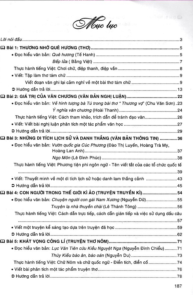 NỘI DUNG SÁCH Bài 1: Thơ và thơ song thất lục bát Bài 2: Truyện thơ nôm Bài 3: Văn bản thông tin Bài 4: Truyện ngắn Bài 5: Nghị luận xã hội Bài 6: