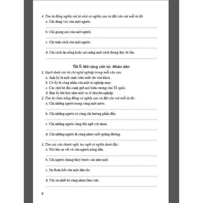 Hi vọng rằng, cuốn sách này sẽ là tài liệu tham khảo giúp các em học sinh phát triển kĩ năng giải các câu hỏi và bài tập Tiếng Việt, đặc biệt là những câu hỏi và bài tập ở dạng nâng cao.