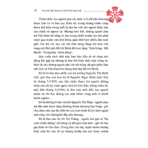 Cuốn sách Phụ nữ Việt Nam có một thời như thế do Nhà xuất bản Chính trị quốc gia Sự thật xuất bản, phát hành, tuyển chọn, tập hợp từ những kỷ vật lưu giữ là hàng nghìn lá thư được viết trong thời kỳ d...