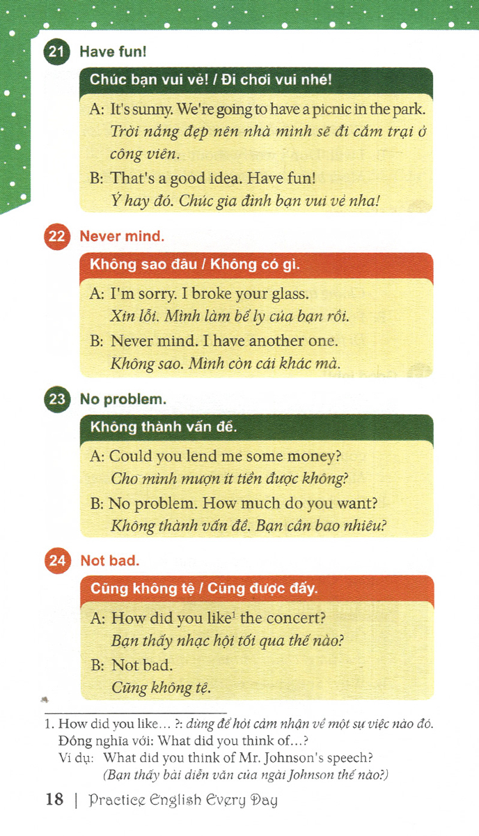 Practice English Every Day - Đối Đáp Tiếng Anh Không Cần Nghĩ Practice English Every Day - Đối Đáp Tiếng Anh Không Cần Nghĩgồm 900 câu tiếng Anh thông dụng với những mẫu đàm
