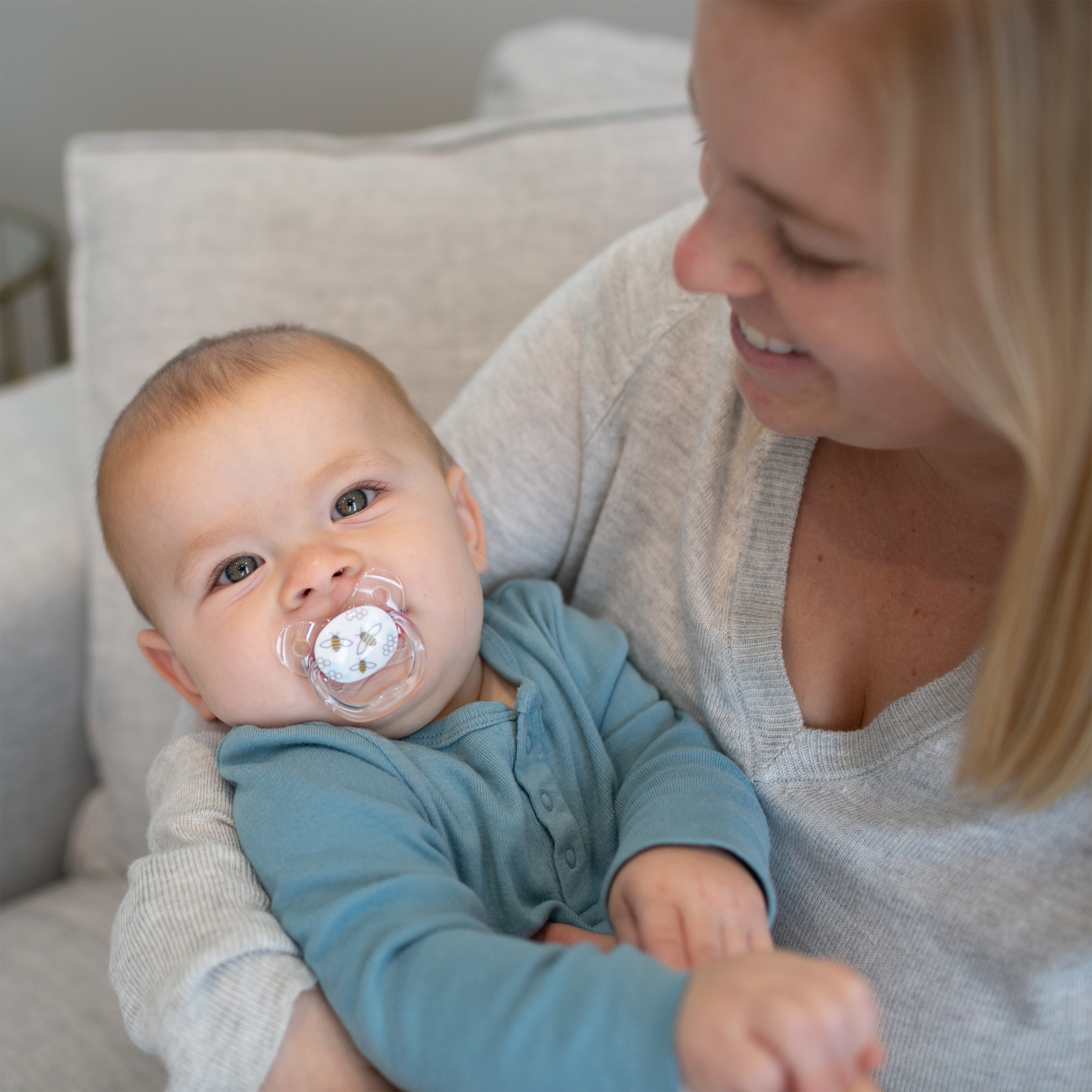 - Nhiều khe hở trên mặt cong cho phép không khí lưu thông để giảm thiểu khả năng bé thiếu dưỡng khí, chống đột tử khi bé ngậm trong lúc ngủ ( nước bọt sẽ đi từ khe hở xuống cuống họng, làm cho bé nuốt nước bọt, giúp duy trì được cơ chế đường hô hấp )