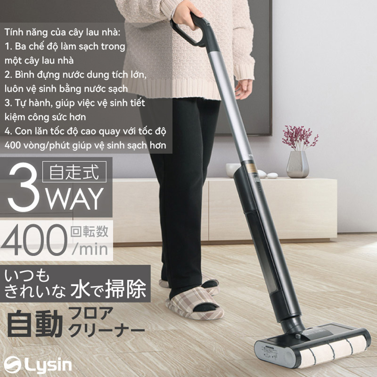MÔ TẢ SẢN PHẨM Cây lau nhà thông minh tự vắt với khả năng lau sạch sàn nhà một cách nhanh chóng và nhẹ nhàng, phù hợp với mọi loại bề mặt sàn như sàn