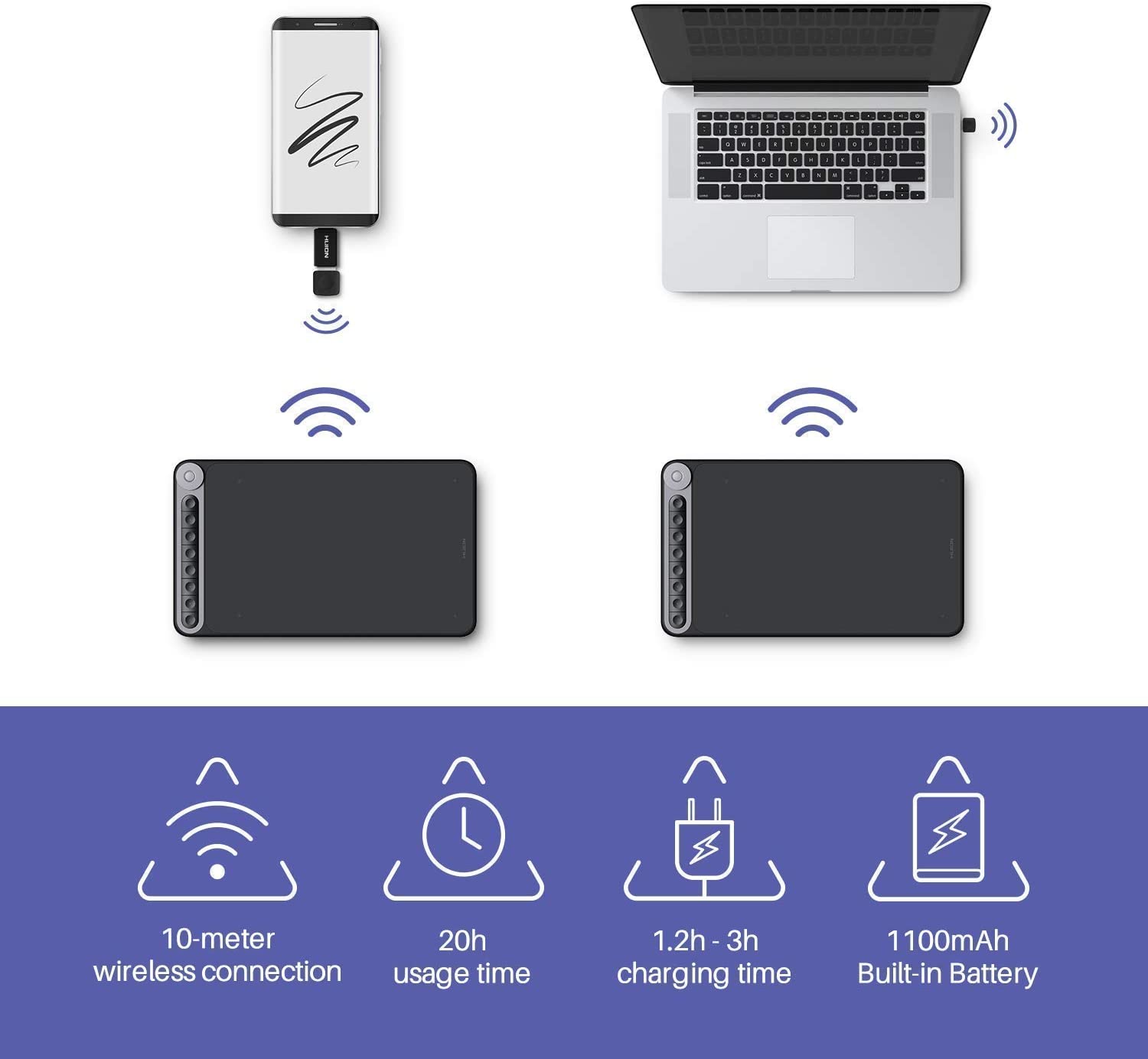 Bảng Vẽ Điện Tử HUION H1060P Hàng Nhập Khẩu 1. Stylus không có pin: Được trang bị bút stylus không có pin PW100 mới nhất của tỷ lệ báo cáo 233PPS, chiều cao nhạy cảm 10mm và độ phân