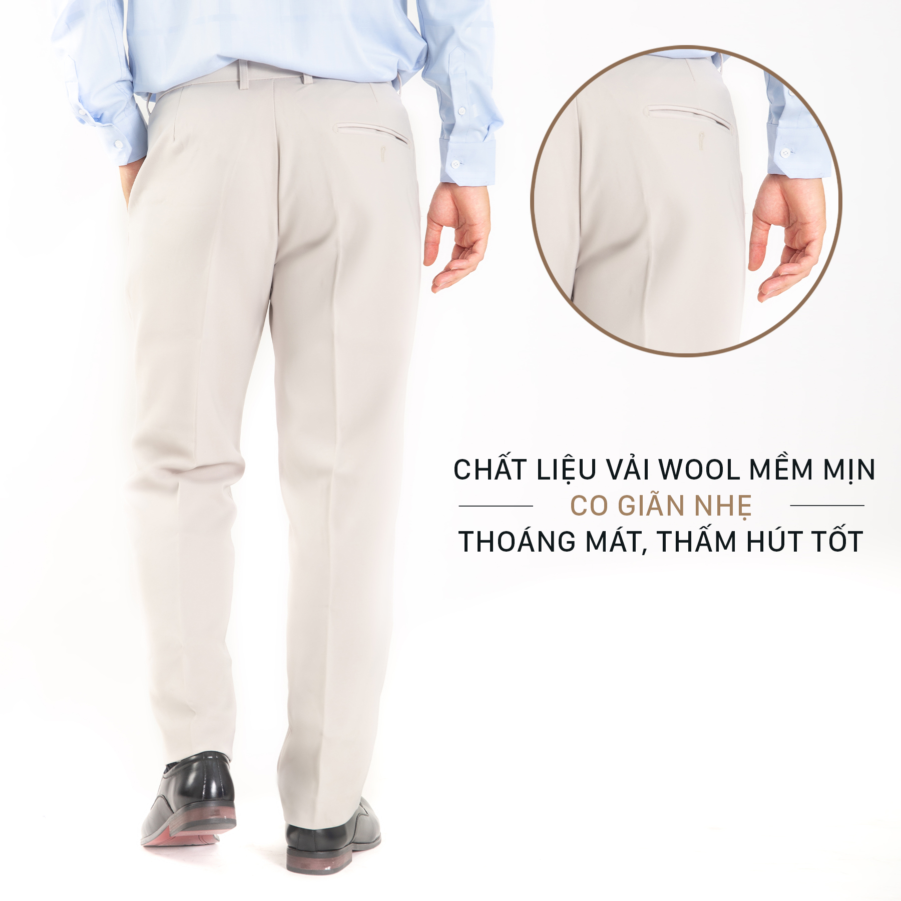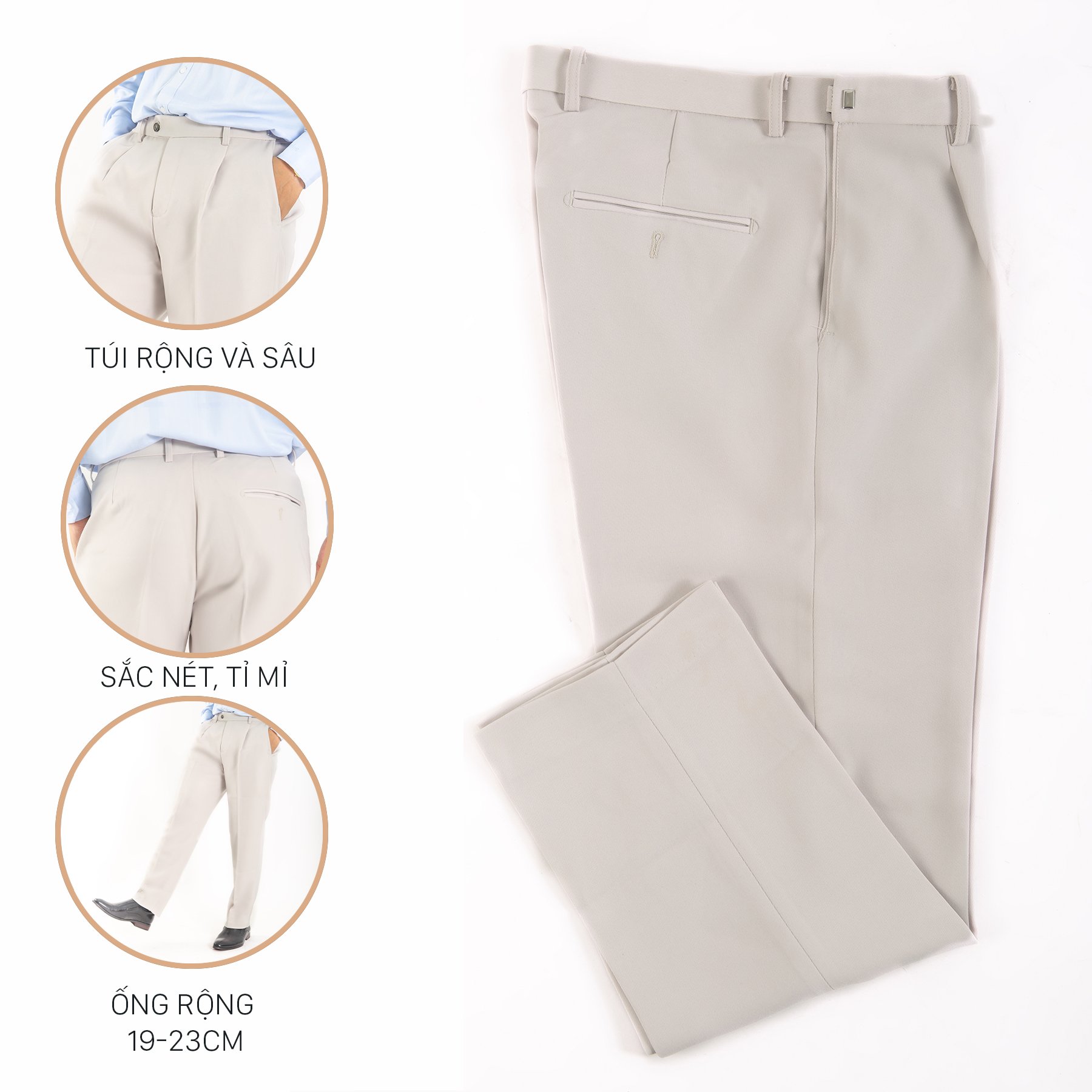 ✨Quân Âu Anton Dáng Rộng, Xếp Ly, Quần Âu Công Sở Nam Trung Niên Màu Trắng Kem QA601