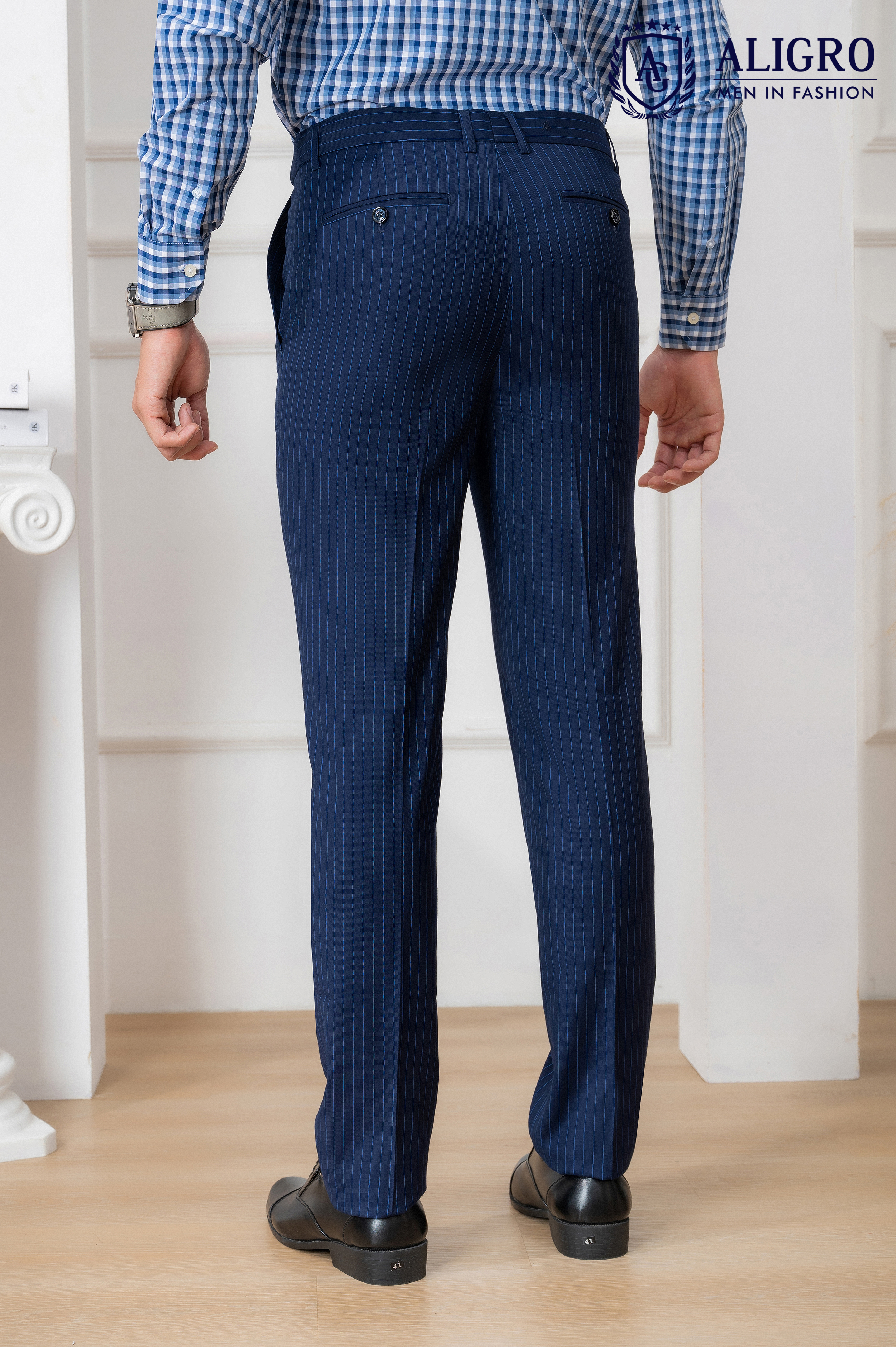 ✨Quần Âu Nam ALIGRO Màu Navy Kẻ Sọc Trắng Chuẩn Form Slim, Tôn Dáng, Chất Liệu Nano Cao Cấp ALGO1053