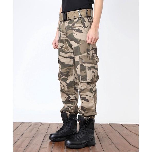Quần dài túi hộp_ngắn lính rằn ri ( kèm thắt lưng ) Hàng nhập khẩu Vải kaki dày mịn đẹp , mặc rất thoáng mát Được wash nhẹ tạo độ mịn và bụi Phom áo