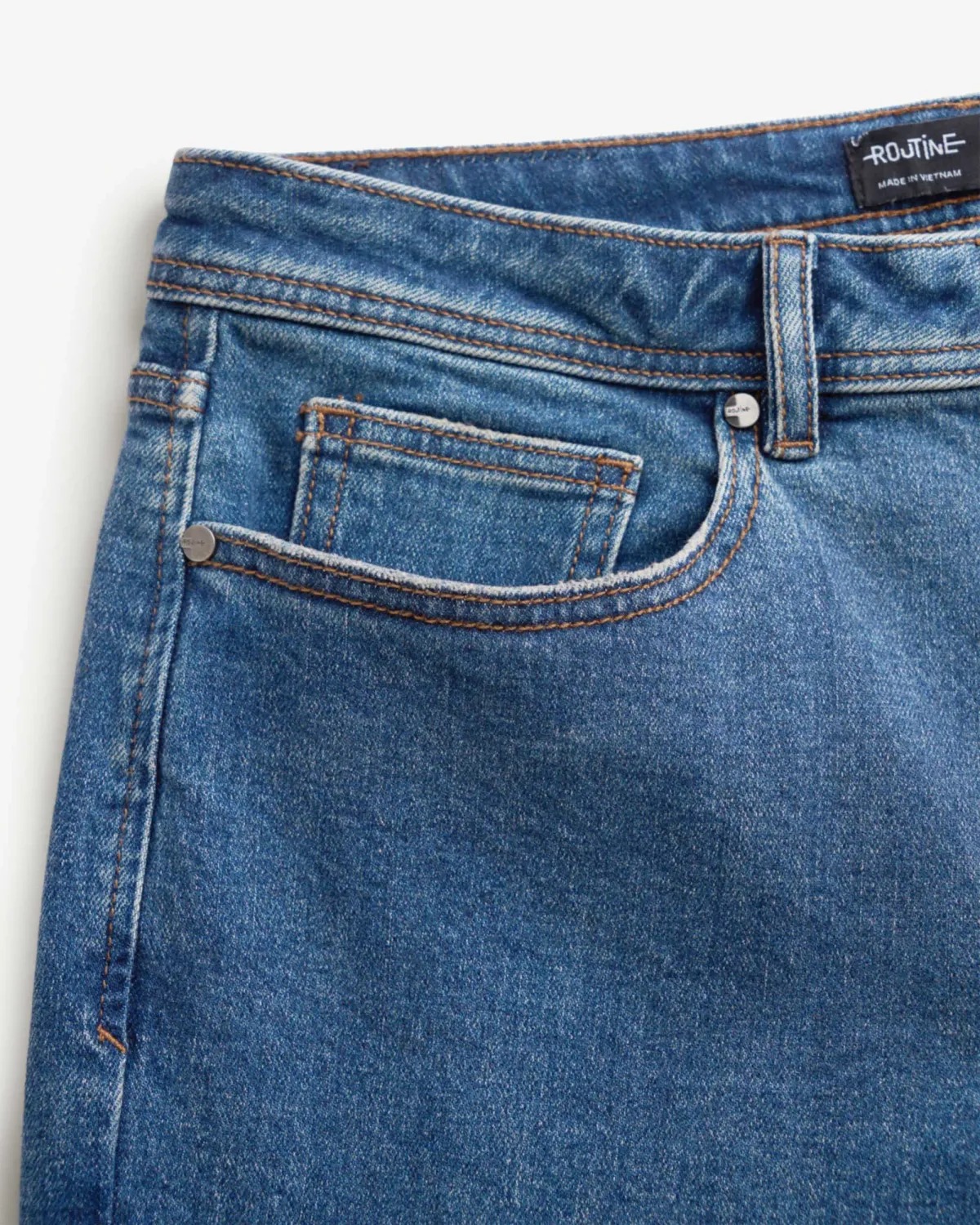 Quần Jean Nam ROUTINE Ống Ôm Xanh Trơn Cotton Spandex Form Slim - 10S24DPA004R1 | ROUTINE CÀ MAU ĐẶC ĐIỂM NỔI BẬT Nhóm sản phẩm Quần Jean Form dáng Slim Giới tính Nam Chất liệu
