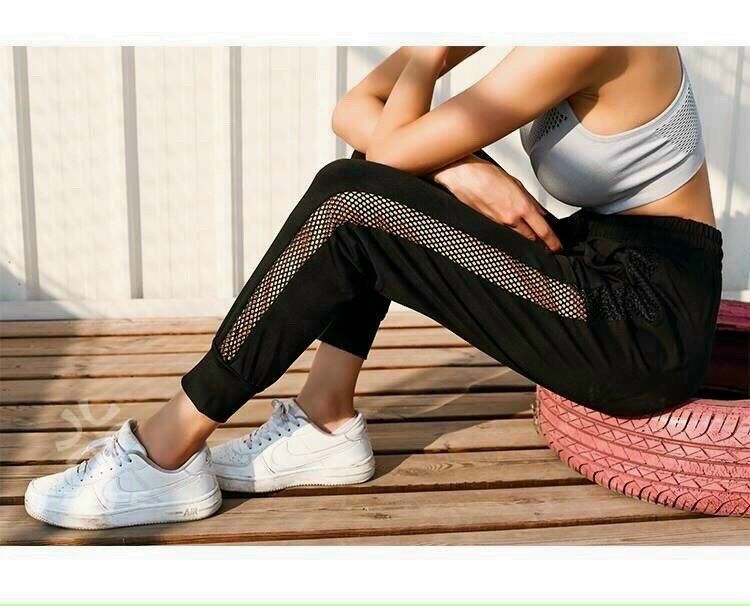 Quần jogger phối lưới sọc trắng tập gym thể thao yoga nữ Chất liệu bền chắc Chất vải co dãn 4 chiều, thấm hút mồ hôi Quần nâng mông tôn dáng cực kì luôn ạ