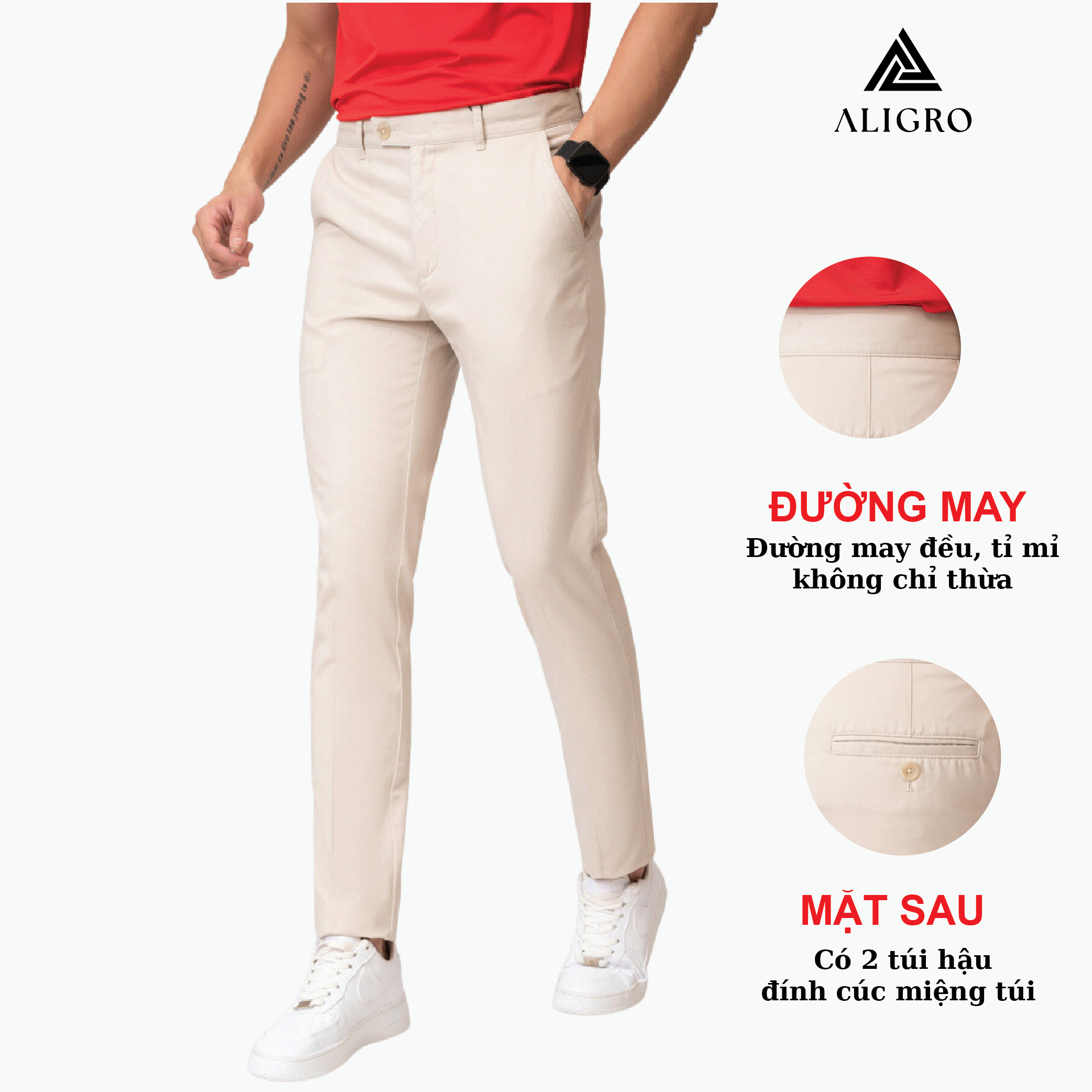 Quần kaki nam Aligro ALGK034 được may từ chất liệu vải kaki bền đẹp, thiết kế đứng dáng mang đến cho phái mạnh phong cách khỏe khoắn, nam tính. Chất liệu vải kaki cao cấp Thiết kế cạp đính đỉa, 1 khuy Dáng Slim-fit, ống đứng HƯỚNG DẪN BẢO QUẢN ÁO – Không giặt bằng xà phòng có độ tẩy cao – Nên lộn trái sản phẩm khi phơi – Không phơi trực tiếp dưới nắng gắt