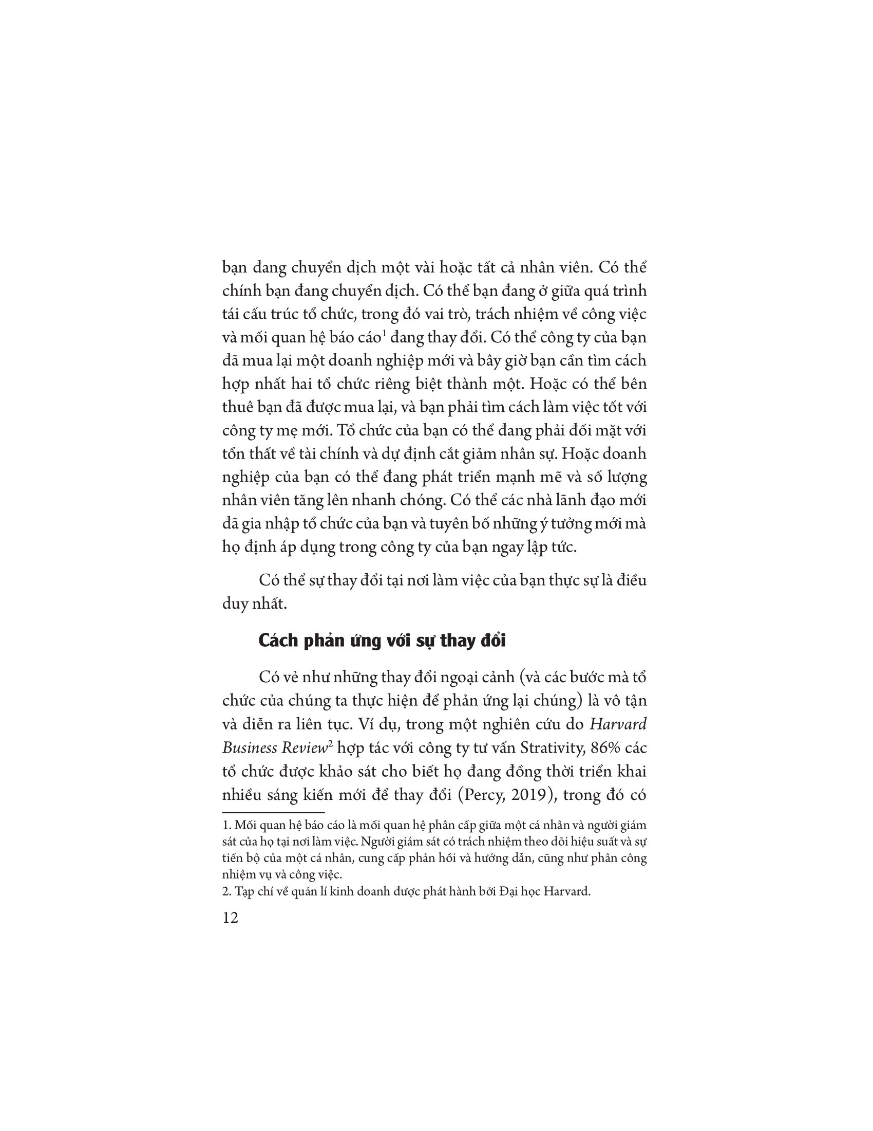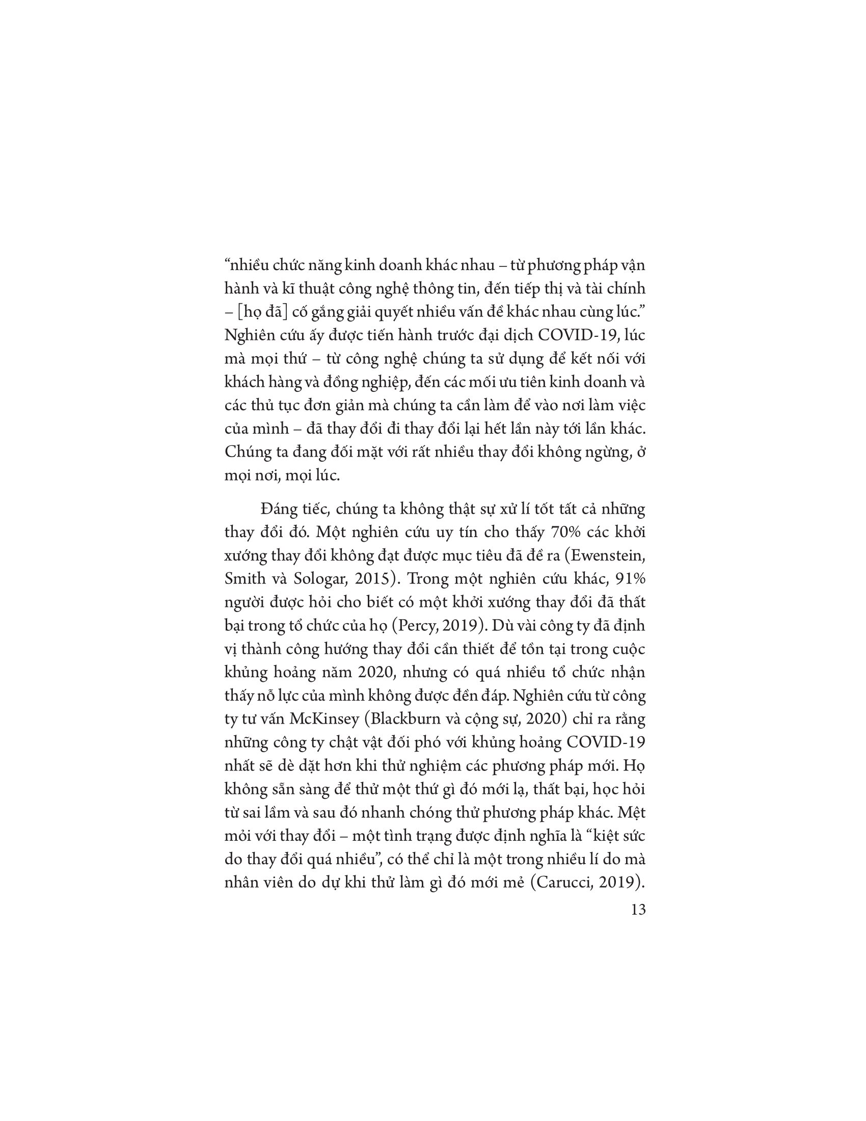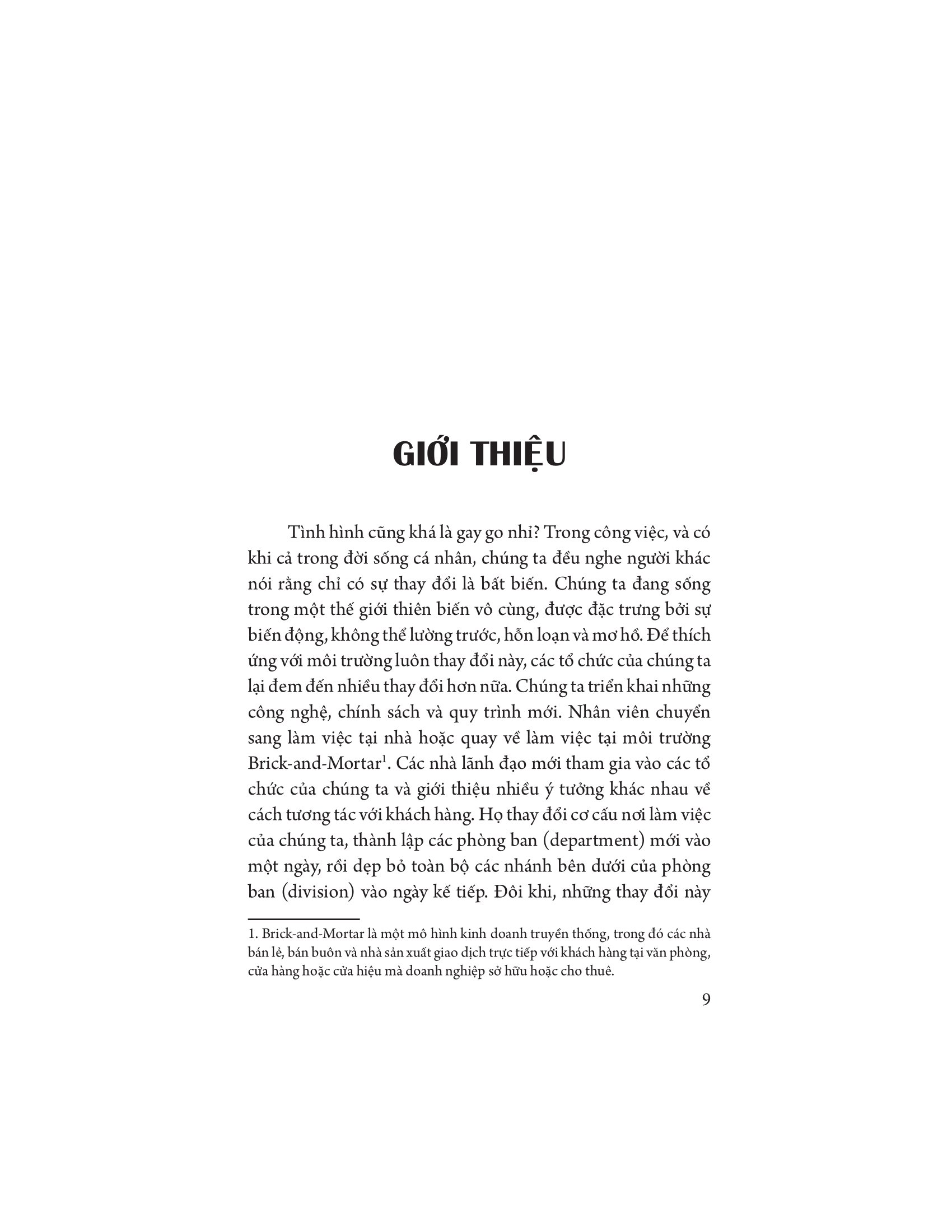 Trong công việc, và có khi cả trong đời sống cá nhân, chúng ta đều nghe người khác nói rằng chỉ có sự thay đổi là bất biến. Chúng ta đang sống trong một thế giới thiên biến vô cùng, được đặc trưng bởi sự biến động, không thể lường trước. Song rất nhiều lần, những nỗ lực thay đổi của chúng ta lại không đạt được mục tiêu mong muốn. Khách hàng rời đi, có khi còn nhiều hơn trước. Năng suất vẫn như cũ, thậm chí còn sụt giảm. Chúng ta cố gắng tìm hiểu chuyện gì đã xảy ra, mình đã bỏ qua điều gì, và chúng ta được bảo rằng kết quả không như mong muốn cũng là chuyện thường tình. Đôi khi những thay đổi ấy có hiệu quả, đôi khi lại không.