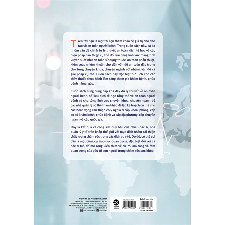 Quản lý nguy cơ lâm sàng và An toàn người bệnh là một tài liệu tham khảo vô cùng giá trị về an toàn người bệnh. Trong cuốn sách này, cả ba nhóm vấn đề chính: từ lý thuyết an toàn, dịch tễ học và các biện pháp can thiệp cụ thể đối với từng lĩnh vực mang tính xuyên suốt như an toàn sử dụng thuốc, an toàn phẫu thuật, kiểm soát nhiễm khuẩn cho đến vấn đề an toàn đặc trưng cho từng chuyên khoa, chuyên ngành với những vấn đề và giải pháp cụ thể. Cuốn sách này đặc biệt hữu ích cho các nhân viên y tế trực tiếp tham gia khám, chữa bệnh hằng ngày.