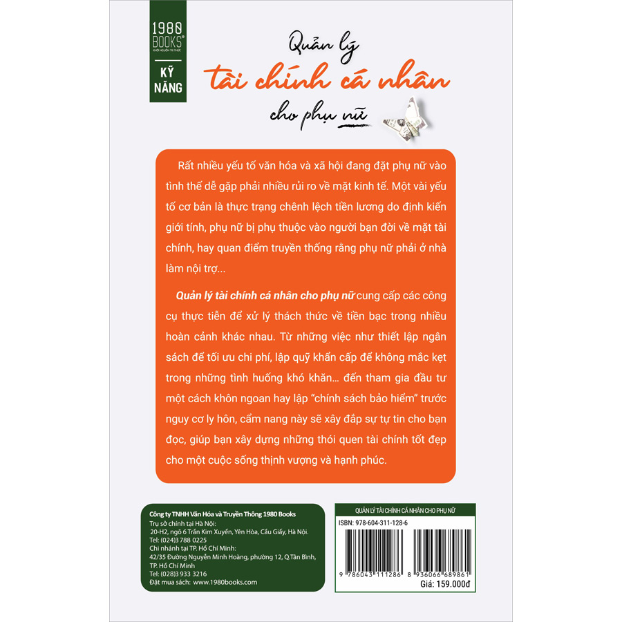 Từ những việc như thiết lập ngân sách hiệu quả để tối ưu chi phí, lập ra quỹ khẩn cấp để không bị mắc kẹt trong những tình huống khó khăn, tham gia đầu tư một cách khôn ngoan, lập “chính sách bảo hiểm” cho nguy cơ ly hôn, đứng ra điều hành doanh nghiệp riêng… đến các biện pháp tinh tế để đương đầu với đủ loại định kiến và rủi ro có thể ập xuống phụ nữ, cẩm nang này sẽ xây đắp sự tự tin cho bạn đối với lĩnh vực tài chính, giúp bạn xây dựng và củng cố những thói quen tốt đẹp ngay sau khi đọc sách. Chúng ta sẽ nói về sự thịnh vượng và làm thế nào để bạn có thể sống một cuộc đời thật mãn nguyện, bất kể tình hình tiền bạc hiện tại của bạn ra sao.
