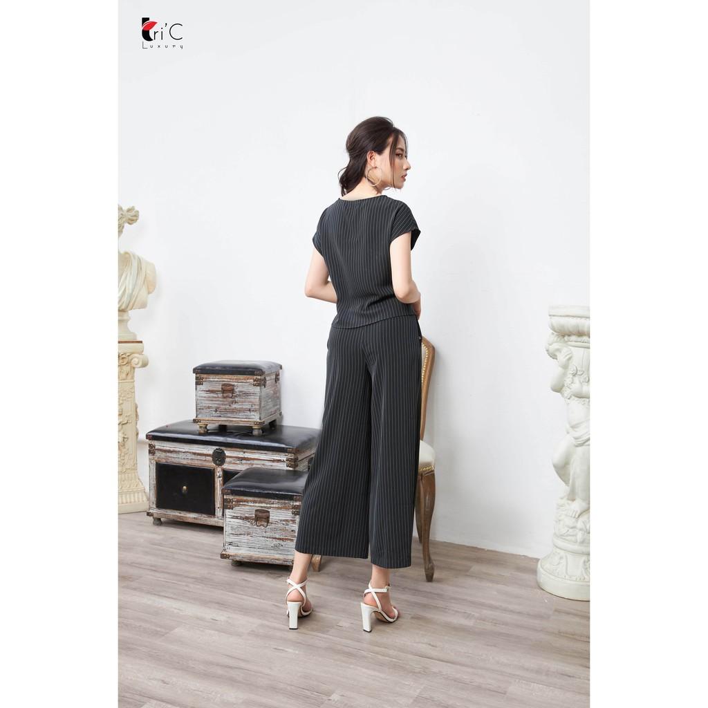 ✨Quần ống suông Tri'C Luxury kẻ xếp ly Đen Q020820