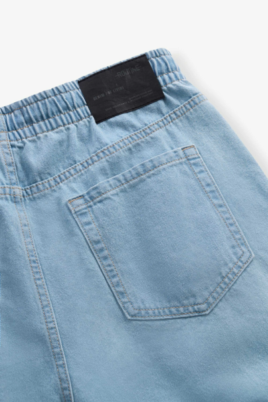 ✨Quần Short Jean ROUTINE Nam Lưng Thun Trơn Ống Rộng Form Loose - 10S24DPS002 | LASTORE MENSWEAR