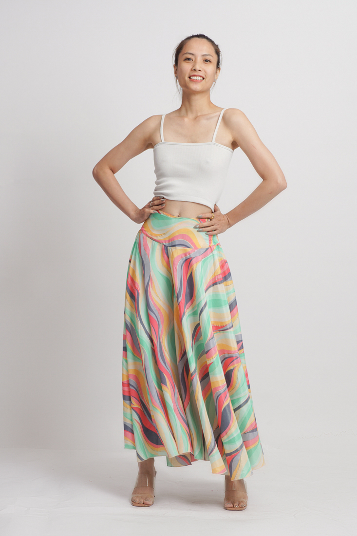 Quần Xòe Cotton Cao Cấp Luna Llena, chất lụa mềm mại, dáng váy xòe rũ. Lưng thun co giãn phần eo. Dài 100cm. Phù hợp đi biển, dạo phố, công sở, hoặc dự tiệc. Hướng