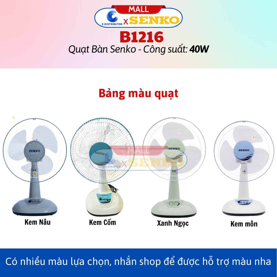 Quạt bàn B3 Senko B113 tên mới B1216 F16 - 12inches • Màu sắc: Cốm, Kem Môn, Kem Nâu (shop giao màu ngẫu nhiên) • Dòng sản phẩm: Quạt Bàn • Công suất: 40W •