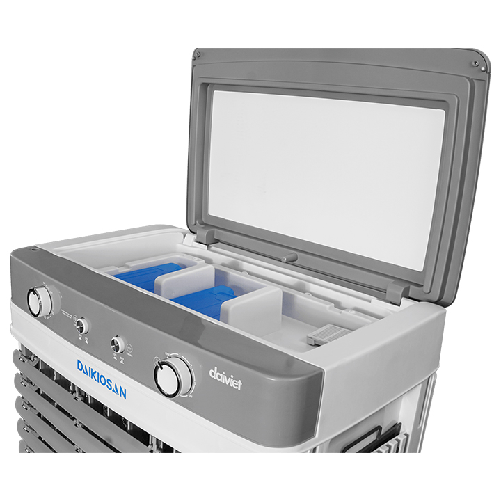 Giới thiệu sản phẩm: Quạt điều hòa dân dụng Daikiosan DM103 - chính hãng Nếu bạn đang tìm kiếm một giải pháp hạ nhiệt nhanh, an toàn, tiết kiệm điện lại có thể diệt khuẩn, khử mùi, lọc bụi cho không gian thì máy làm mát Daikiosan DM103 chính là siêu phẩm dành cho chính bạn và gia đình bạn. Trong thời điểm không khí ngày càng ô nhiễm, làm sao để có không gian sạch mát cho cả gia đình chính là ưu tiên hàng đầu của các bậc cha mẹ. Hạ nhiệt tức thì, đập tan nắng nóng Với công nghệ làm mát bằng hơi nước tự nhiên, máy làm máy Daikiosan DM103 cho ra khí mát với nhiệt độ, cân bằng độ ẩm siêu lý tưởng cho gia đình bạn. Sản phẩm cũng không gây sốc nhiệt, khô da như điều hòa. Hiệu suất làm mát mạnh mẽ Máy làm mát Daikiosan DM103 sở hữu công suất 175W, tốc độ gió từ 7,8 - 9,7 m/s giúp máy phân phối không khí mát rộng rãi, đặc biệt hiệu quả trên diện tích lớn từ 45-55m2. Tốc độ gió linh hoạt Máy làm mát không khí Daikiosan DM103 mang đến trải nghiệm làm mát tối ưu với 3 tốc độ gió đa dạng: cao, trung bình, thấp, giúp bạn linh hoạt điều chỉnh theo nhu cầu và điều kiện môi trường. Chế độ đảo và điều chỉnh đa chiều Siêu phẩm có chế độ đảo gió 4 chiều giúp phân tán gió ở diện tích rộng hơn, gió được phân tán đồng đều cho không gian làm mát. Hạ nhiệt ngày nắng nóng bằng nước và đá khô Để dập tắt nắng nóng những ngày cao điểm, máy làm mát Daikiosan DM103 sở hữu thùng chứa nước có dung tích lên đến 72L, cho phép máy làm mát liên tục lên đến 8 giờ, giảm bớt công việc nạp nước liên tục. Máy còn có cảm biến mực nước giúp bảo vệ máy bơm và tăng tuổi thọ cho sản phẩm. Ngoài ra, máy đi kèm với 2 hộp đá khô, giúp làm mát nhanh chóng và hiệu quả hơn, đồng thời tạo ra không khí mát mẻ ngay lập tức. Bạn chỉ cần cho đá khô vào tủ lạnh để đông xong đó đưa ra sử dụng là được. Diệt khuẩn, khử mùi và lọc bụi cho không khí sạch lành Ứng dụng công nghệ Ag+ duy nhất Được trang bị công nghệ diệt khuẩn Ag+, tiêu diệt đồng thời nhiều loại vi sinh vật và vi khuẩn gây bệnh độc hại. Hạn chế mùi hôi khó chịu trong nước ở thùng chứa, đảm bảo không khí trong lành và an toàn. Lọc bụi công nghệ kép Máy sở hữu lọc bụi 2 lớp giúp cho không khí sạch, trong lành hơn cho gia đình bạn Độ ồn thấp Với mức độ ồn dao động từ 55-68 dB, Máy làm mát không khí Daikiosan DM103 giữ cho không gian sống yên tĩnh và thoải mái, không làm ảnh hưởng đến sự thoải mái của bạn. Linh phụ kiện bền bỉ, cùng bạn vượt thời gian Máy làm mát không khí Daikiosan DM103 hoạt động bền bỉ nhờ trang bị nhiều linh kiện chất lượng: Motor nguyên chất, có độ bền gấp 1.5 - 2 lần so với các loại thông thường. Thân máy làm bằng nhựa cao cấp an toàn cho sức khỏe. Bo mạch phủ lớp chống oxy hóa, chống ẩm, giúp tăng thêm tuổi thọ cho sản phẩm. Máy có thêm tính năng tự động ngắt bơm khi hết nước, giúp hạn chế các sự cố cháy nổ và đảm bảo tuổi thọ của bơm.