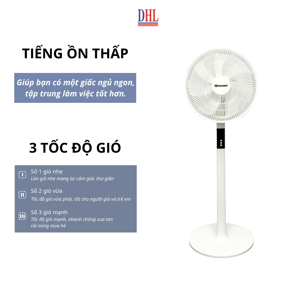 ✨Quạt đứng điện tử có điều khiễn từ xa, hẹn giờ Mitomo FCE-60AEV, công suất 60W, động cơ dây đồng hàng chính hãng - Bảo hành 2 năm