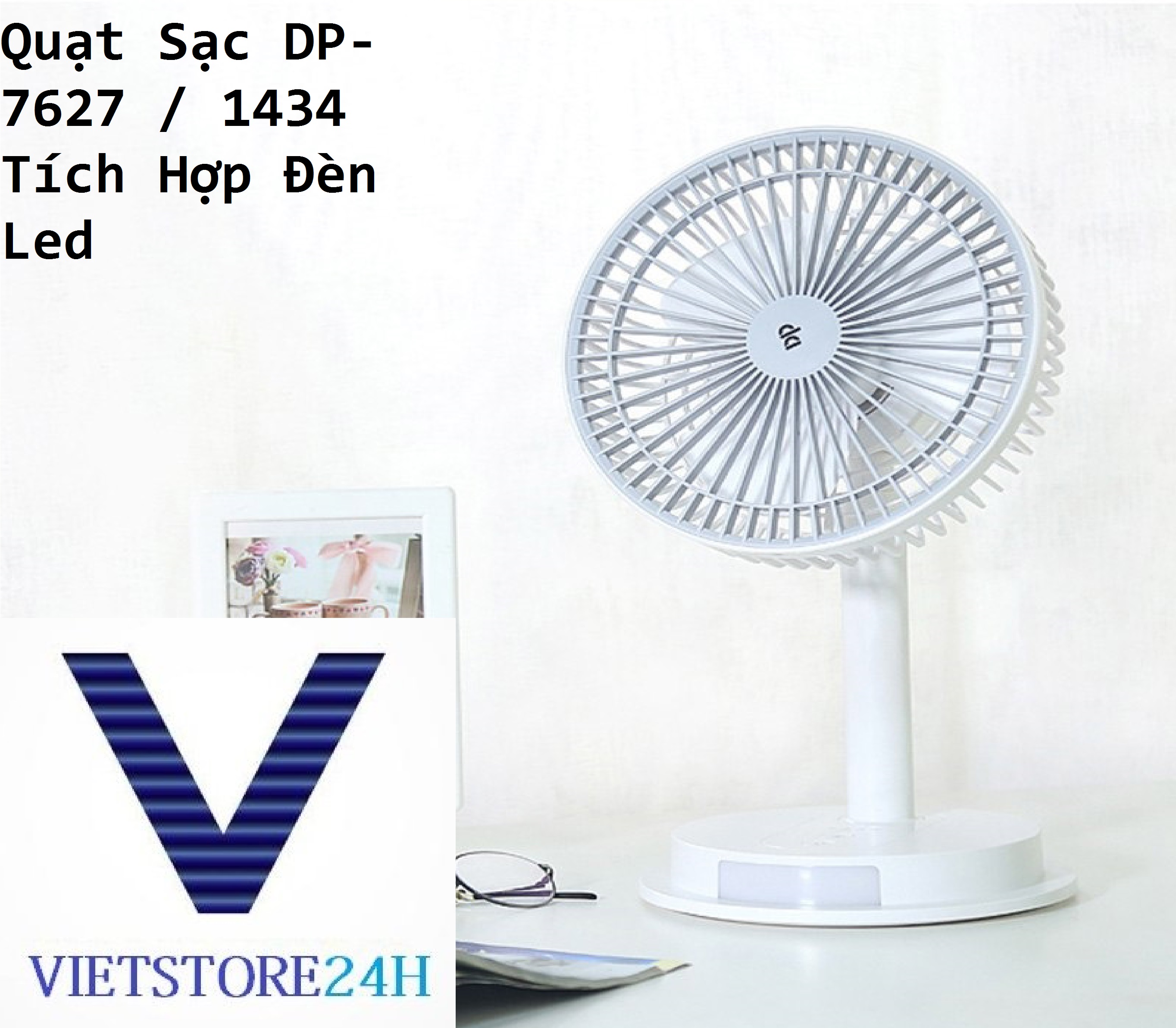 ✨Quạt Sạc DP-7627 / 1434 Tích Hợp Đèn Led VT - Hàng chính hãng