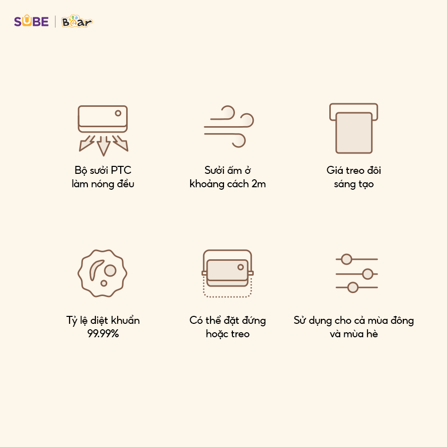 Máy Sưởi Bear Sưởi Ấm Liên Tục Chăm Sóc Chu Đáo Thiết Kế Đa Năng Diệt Khuẩn DNQ-E20N1 - 3 chế độ gió nóng – lạnh, sử dụng cả 4 mùa - Khoảng cách sưởi