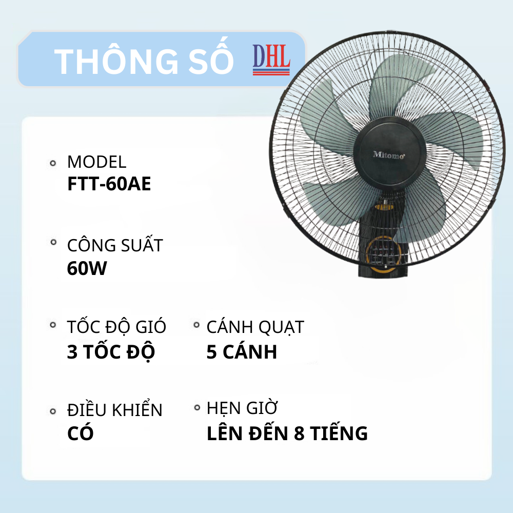QUẠT TREO TƯỜNG MITOMO FTT-60AE - HÀNG CAO CẤP, BẢO HÀNH CHÍNH HÃNG 2 NĂM