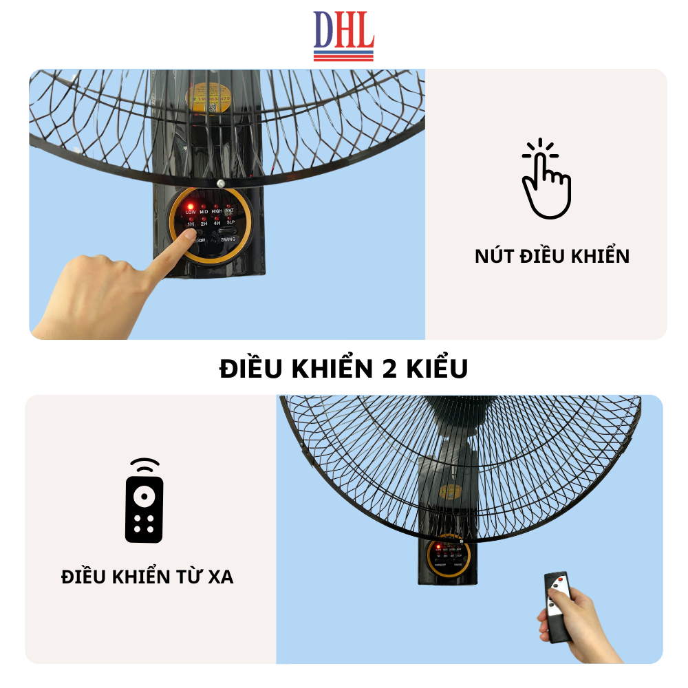 - Điều khiển trên thân quạt: bấm