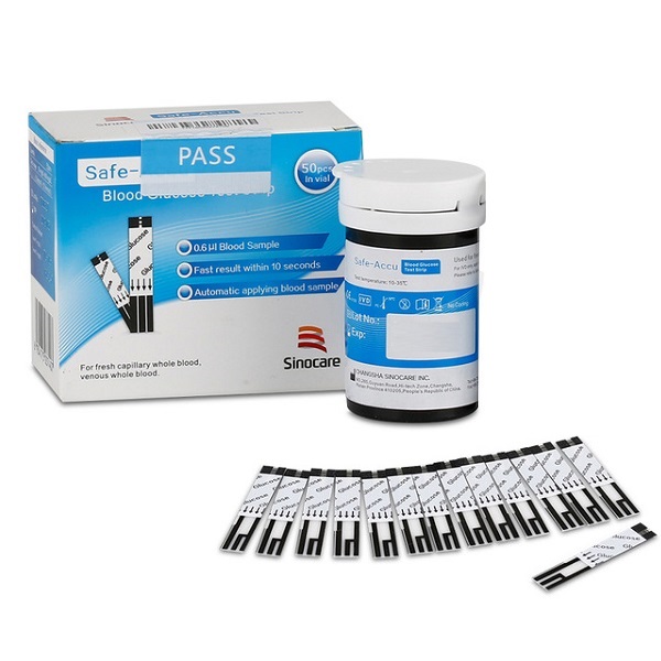 Que thử máy đo Đường Huyết Sinocare Safe Accu dùng máy Sinocare, Hộp 50 Que date xa -Y Tế Thanh Tuấn