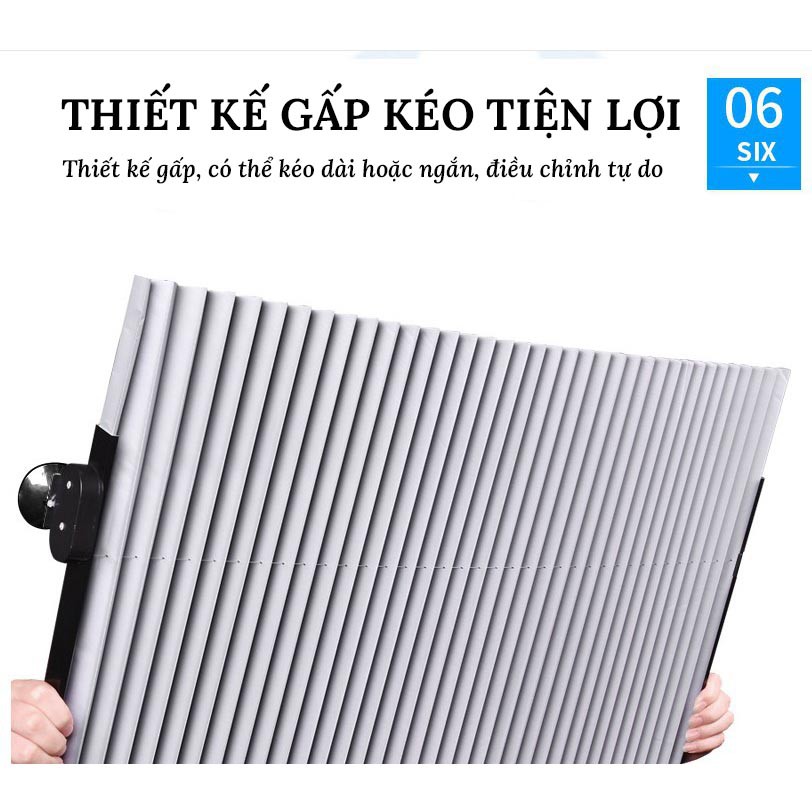 Rèm Che Nắng Kính Lái Ô Tô Tráng Nhôm Cách Nhiệt – Xếp Gọn Tiện Lợi Rèm che nắng kính lái ô tô thiết kế dạng rèm kéo, cấu tạo gồm các lá nhôm phủ