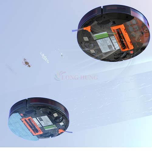+ Robot tích hợp khả năng hút bụi với lực hút 3000Pa siêu mạnh và lau nhà cùng một lúc + 3 chổi quét giúp dọn sạch bụi nhanh chóng (2 chổi quét 2 bên