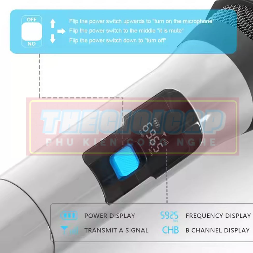 TÍNH NĂNG CƠ BẢN Lõi micro chất lượng, thu 360°, độ nhạy cao. Xử lí âm thanh kỹ thuật số DSP, chống hú, chống nhiễu, tín hiệu ổn định và không gián đoạn. Sóng UHF,