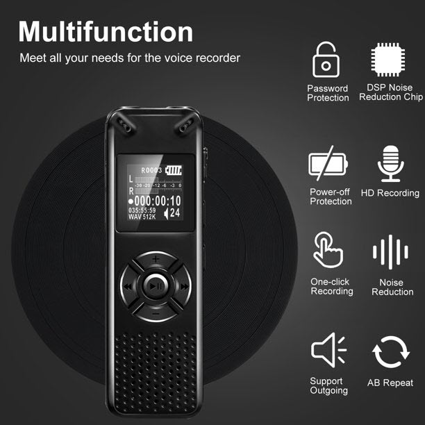 Máy ghi âm kỹ thuật số đơn giản đầy phong cách này có thể được mang đi bất cứ đâu để ghi lại âm thanh trong các bài giảng, cuộc họp, cuộc trò chuyện và