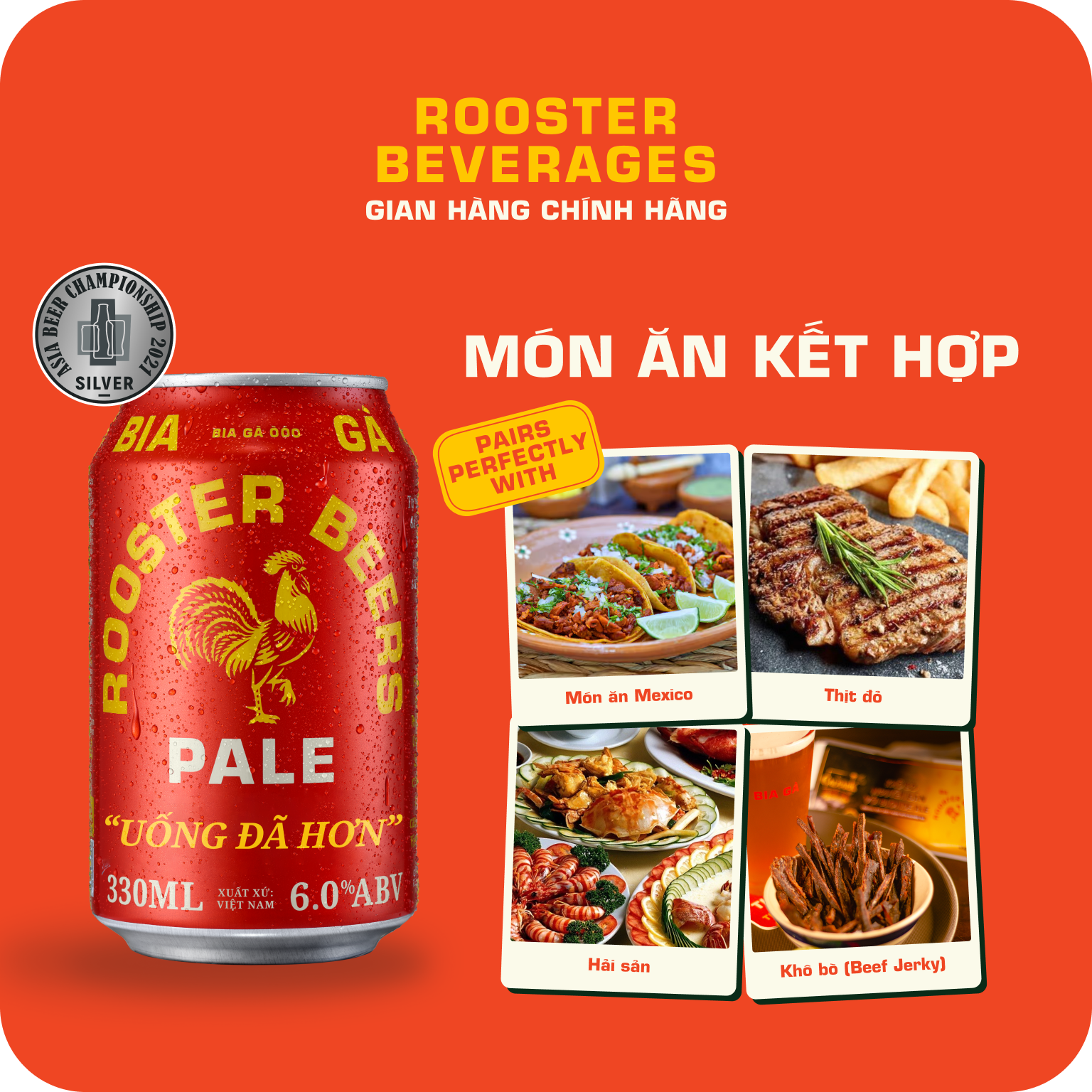 Rooster Beer Pale - Vị Nồng Nàn Dễ dành chinh phục cả những người sành bia khó tính Rooster Pale mang đến cho bạn trải nghiệm thưởng bia tinh tế với nền bia sệt quấn