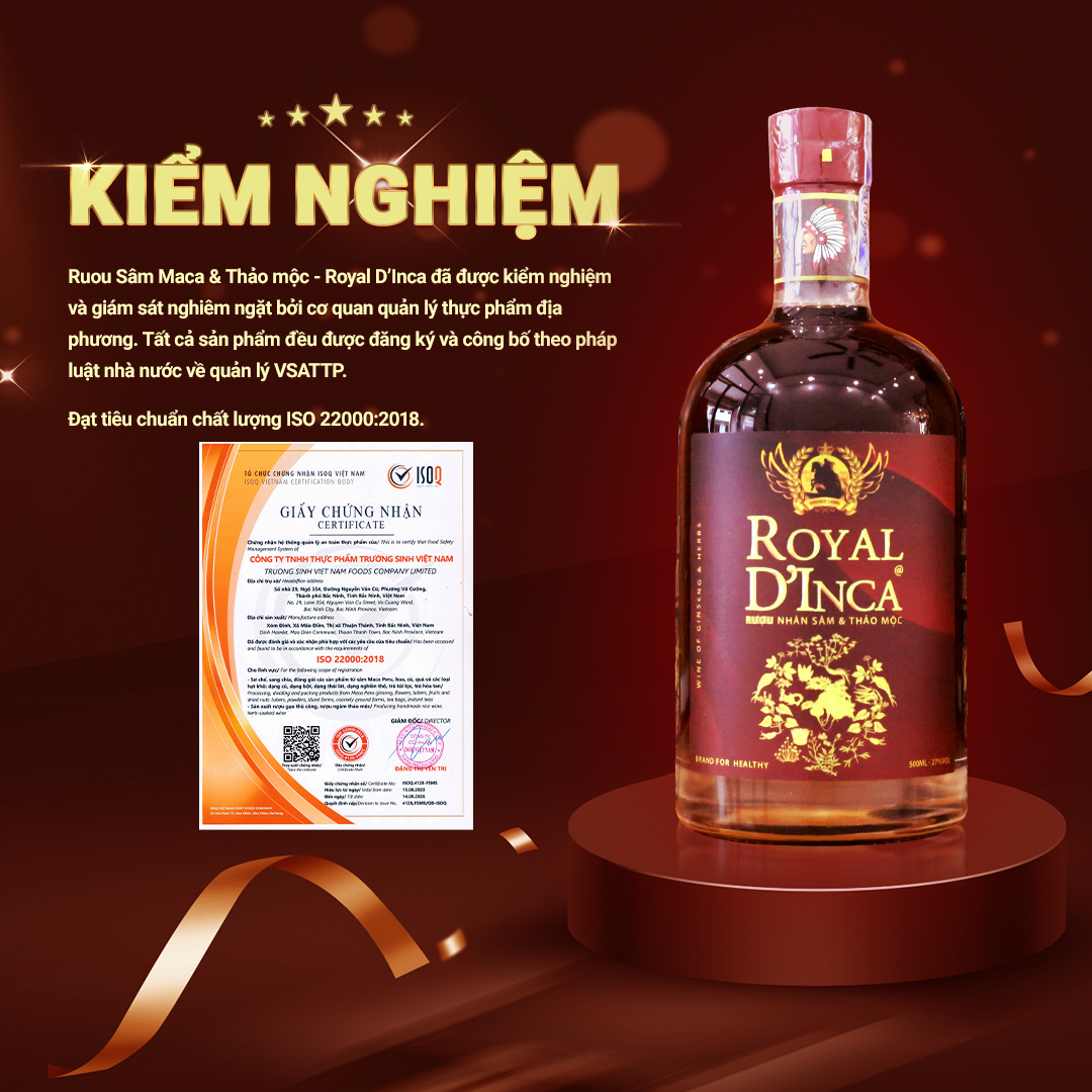 Tên sản phẩm: Royal D’Inca - Rượu sâm Maca & thảo mộc