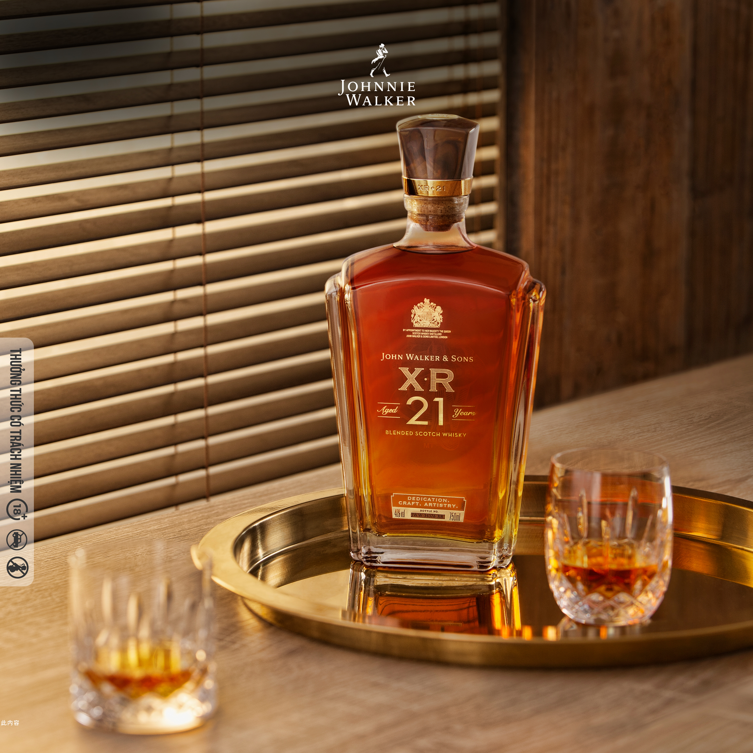 Về Johnnie Walker Johnnie Walker là một nhãn hiệu rượu Whisky Scotland sở hữu bởi Diageo, có xuất xứ từ Kilmarnock, Ayrshire, Scotland. Đây là nhãn hiệu rượu whisky pha Scotland phổ biến rộng rãi nhất trên thế giới, được bán ở hầu khắp các quốc gia với trên 130 triệu chai một năm. Ở Việt Nam, nó còn được biết đến với tên gọi Ông già chống gậy do logo của sản phẩm rượu có hình một người đàn ông với cây gậy. Về Rượu Johnnie Walker John Walker & Sons X.R 21 “Đỉnh cao chế tác” John Walker & Sons X.R 21 năm tuổi ra đời nhân sự kiện Ngài Alexander Đệ Nhị được trao tặng tước hiệu Hiệp Sĩ. Công thức chế tác dựa trên bản viết tay của Ngài Alexander kết hợp các thành phần whisky quý hiếm trưởng thành ít nhất 21 năm. Chất rượu sóng sánh như vàng, mang hương vị cân bằng, mạnh mẽ và thanh tao. Những lớp hương đậm đà mang đến nhiều điều ngạc nhiên. Được mệnh danh là đỉnh cao chế tác, chính bởi chất vị cân bằng và thanh tao bậc nhất, ẩn chứa những giá trị lịch sử. Được chưng cất ít nhất 21 năm và được tạo nên từ những thùng chưng cất rượu quý hiếm hiện đã không còn được sản xuất Được chế tác theo công thức viết tay của Ngài Alexander Walker Đệ II nhân sự kiện ông được phong tặng tước hiệu Hiệp sĩ Hoàng gia Anh Được áp dụng phương pháp phối trộn 3 giai đoạn độc nhất MÙI VỊ & HƯƠNG VỊ: • Hương: Hương Kem mềm mại, Vanilia. Vị ngọt ngào của Cam, Caramen, Nho khô. • Vị: mật ong ngọt ngào, gây ấn tượng bằng gia vị cay nồng ướp trong làn khói hương mờ ảo. • Hậu vị: kéo dài dịu êm trong hương gỗ sồi và đáng nhớ với một ít vị Khói. John Walker & Sons X.R 21 năm tuổi là loại whisky đặc biệt được chế tác dựa trên bản viết tay của Ngài Alexander Đệ Nhị, Với hương vị cân bằng, mạnh mẽ và thanh tao, hương kem mềm mại, vanilia, vị ngọt ngào của cam, caramen, nho khô và hậu vị kéo dài dịu êm trong hương gỗ sồi và đáng nhớ với một ít vị khói. THÀNH PHẦN - NGUYÊN LIỆU: John Walker & Sons X.R 21 là một loại rượu whisky cao cấp được ủ trong thùng gỗ sồi ít nhất 21 năm, mang đến hương vị và mùi thơm đặc trưng của whisky cùng với hương vị ngọt ngào của vani, trái cây chín mọng và gia vị ấm áp. Đây là lựa chọn tuyệt vời cho những người yêu thích rượu whisky cao cấp và muốn thưởng thức những hương vị độc đáo và tinh tế. HƯỚNG DẪN SỬ DỤNG & THƯỞNG THỨC: • Thưởng thức neat (uống trực tiếp) • On the rock (uống với đá) Thưởng thức nguyên bản hoặc cùng chút đá lạnh là lựa chọn tuyệt vời để thăng hoa vị giác qua từng tầng hương Sản phẩm dành cho đối tượng trên 18 tuổi, vui lòng thưởng thức trách nhiệm cùng Johnnie Walker.
