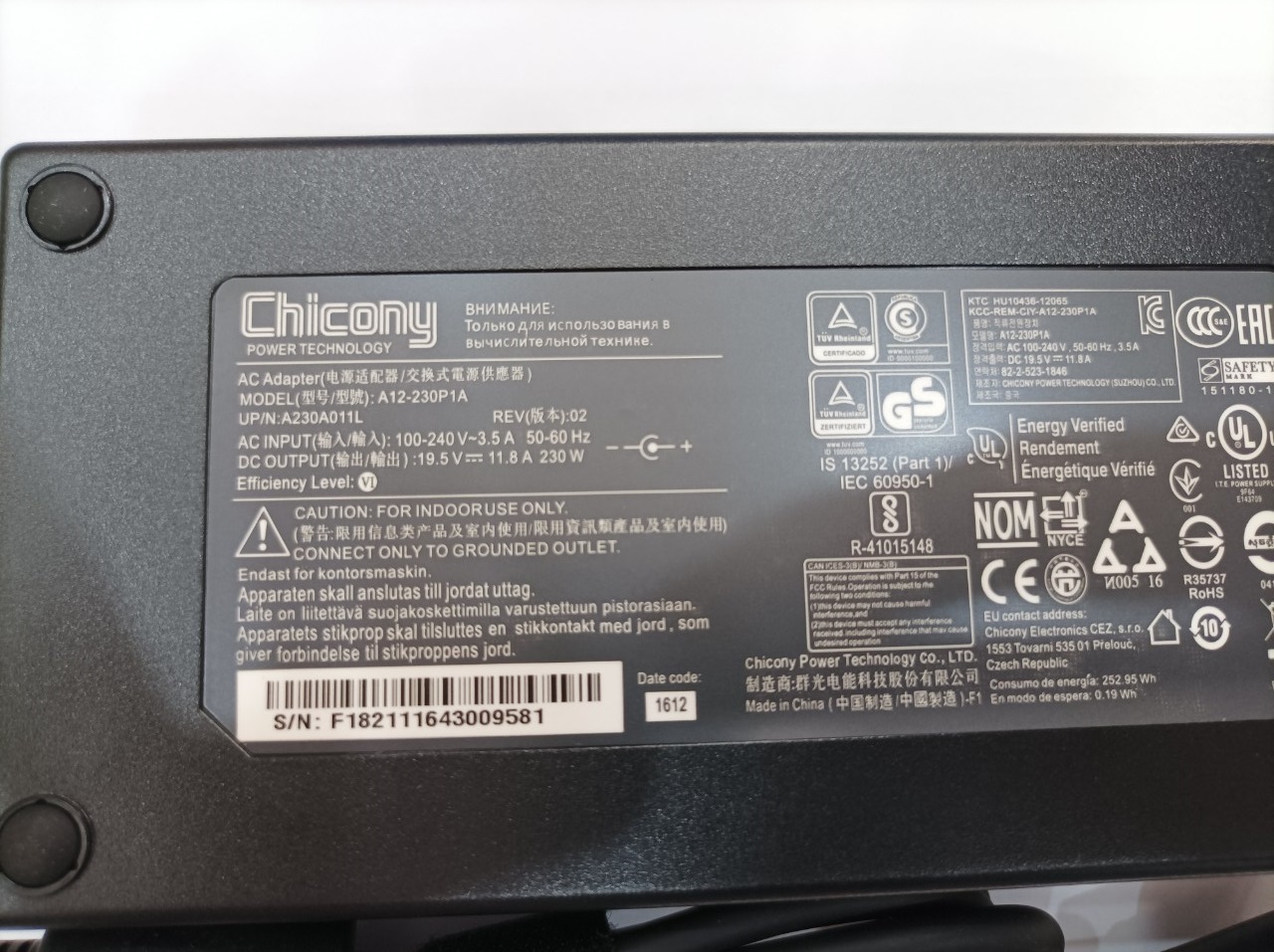 - Tên sạc: Sạc dành cho (Charger Adapter) Laptop Acer ConceptD Ezel CC715-71 CC715-71P Predator Helios PH315-53 PH315-54 PH315-53 PT315-52 PT515-52 – đã bao gồm dây nguồn - Công suất: 230W - Chuẩn chân cắm: