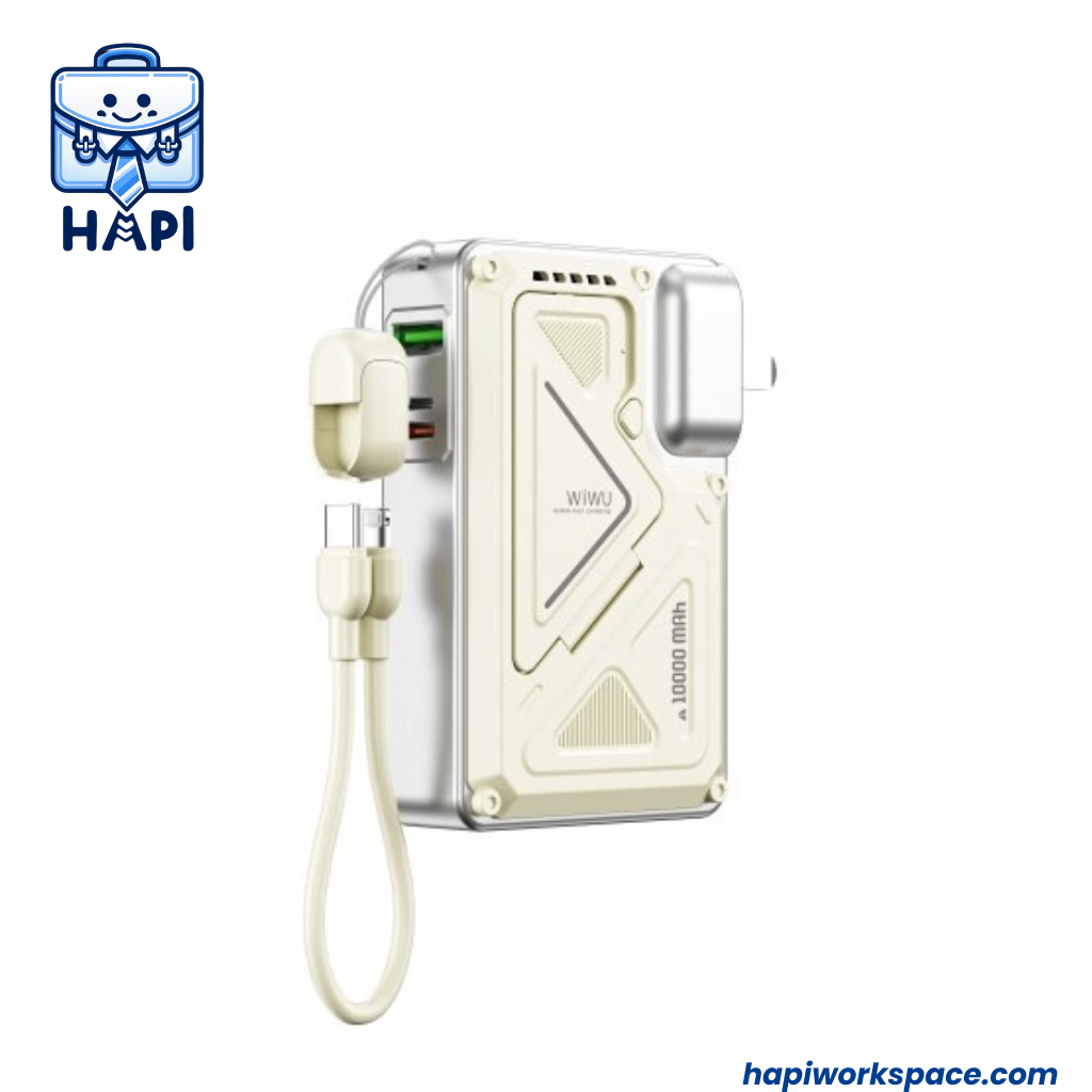 Sản phẩm còn tích hợp bộ đổi nguồn phổ biến, lý tưởng cho những người thường xuyên đi du lịch hoặc công tác quốc tế Được trang bị cáp C to L tích hợp phù