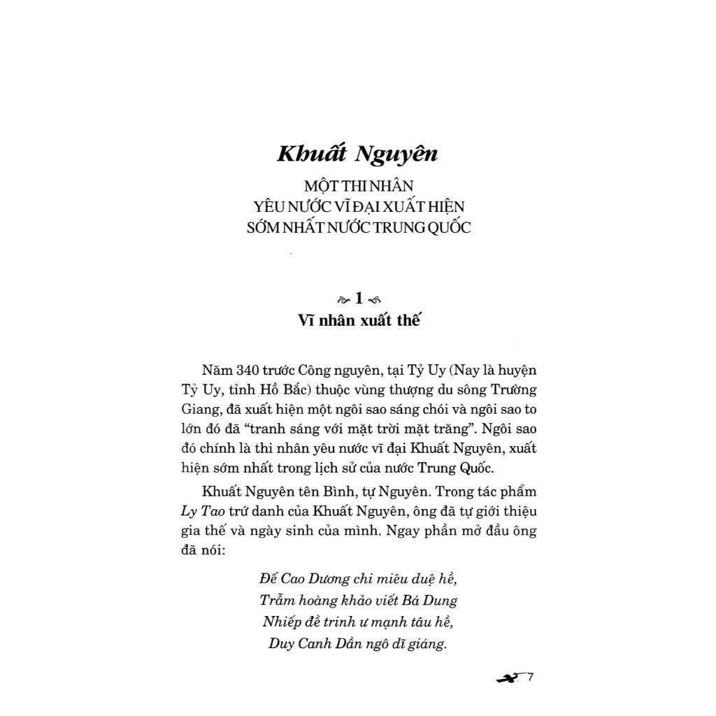 10 Đại Văn Hào Trung Quốc Trong dòng sông dài đầy sóng gió của lịch sử Trung Quốc, trên mảnh đất bao la trù phú của Thần Châu, suốt mấy nghìn năm qua từng xuất hiện nhiều bậc văn hào vĩ đại. Trong số đó có “10 Đại văn hào” tiếng tăm lẫy lừng mà năm tháng trôi qua vẫn không thể nào xóa nhòa được thanh danh cũng như những áng văn chương bất hủ của họ. Những người yêu văn chương thi phú chắc chắn không ai là không biết đến Khuất Nguyên, người đã sáng tác bài trường thi trữ tình “Ly Tao” bất hủ nhằm nói lên ý chí và khát vọng phục vụ Sở quốc nhưng không thành.Cũng vậy, những nhà thơ đời Đường - Tống như Lý Bạch, Đỗ Phủ, Bạch Cư Dị, Tô Thức... đều là những thi nhân hết sức tài hoa với tấm lòng yêu nước rực cháy. Mong muốn duy nhất của họ là được cống hiến tài năng góp phần xây dựng và bảo vệ đất nước nhưng dường như thiên mệnh chỉ cho họ tài năng chứ không cho “thời thế”. Tuy vậy, những thi nhân này vẫn gửi gắm lòng nhiệt huyết cùng nỗi niềm âu lo sầu muộn qua việc đả kích bọn quan lại tham ô bán nước. Những bài thơ này đã làm họ gánh chịu biết bao đắng cay tủi nhục nhưng chính vì vậy mà giá trị của họ càng được tôn vinh. 10 Đại Văn Hào Trung Quốc đã khái quát gần như đầy đủ cuộc đời và sự nghiệp của những nhà văn, nhà thơ nổi tiếng nhất. Đây quả là tư liệu quý giá để quý độc giả tìm hiểu và tham khảo đất nước của “thi quốc” bởi những thành tựu văn học nổi bật và giá trị thẩm mỹ phong phú đậm đà.
