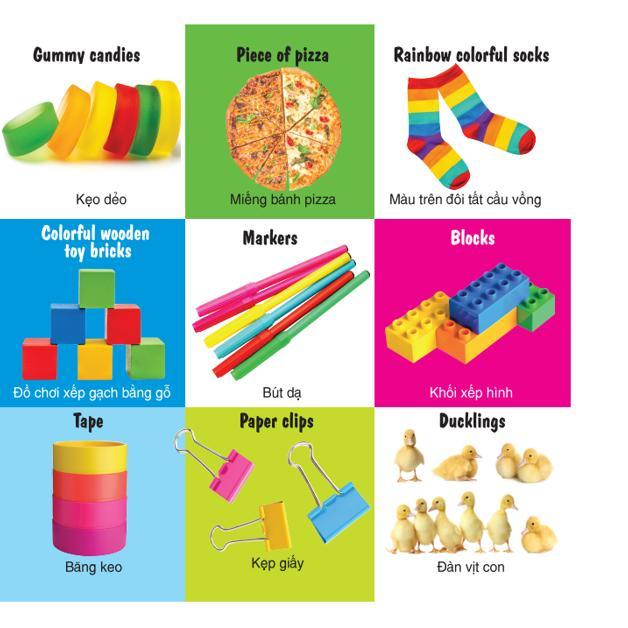 Điểm cộng của bộ sách này còn là yếu tố song ngữ Anh - Việt hấp dẫn, giới thiệu những từ vựng, hình ảnh, kiến thức cơ bản, gần gũi đầu tiên dành cho bé.