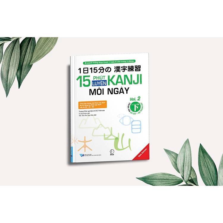 15 Phút luyện Kanji mỗi ngàylà bộ sách cung cấp bộ công cụ luyện tập chữ Kanji được chia theo cấp độ, tương ứng với các cấp độ của kỳ thi JLPT. Bộ sách gồm 4 tập với 2 cấp độ: Sơ cấp – Sơ trung cấp và Trung cấp.