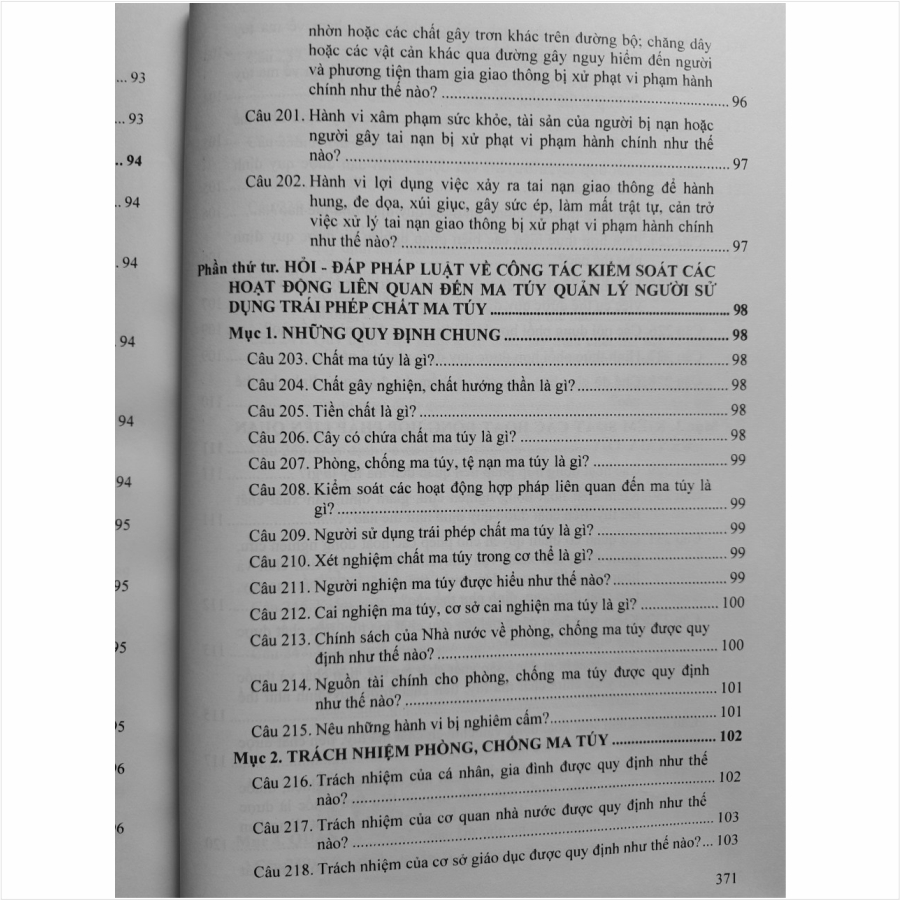 - Toàn bộ sách bìa mềm khổ lớn 19 x 27 cm phân phối bởi Nhà sách Nam Việt đều được bọc sách Plastic MIỄN PHÍ và xuất hóa đơn điện tử đầy đủ, nhanh chóng. …//… Sự phát triển nhanh chóng của cuộc cách mạng công nghiệp tạo ra những thuận lợi, song cũng đặt ra nhiều thách thức về an ninh, lợi ích của các quốc gia, trong đó có Việt Nam. Trước tình hình tội phạm và vi phạm pháp luật có diễn biến phức tạp, để bảo vệ, chăm sóc, giáo dục thế hệ trẻ, xây dựng và bảo đảm cho người học được sinh sống, học tập và rèn luyện trong môi trường giáo dục an toàn, lành mạnh, thân thiện, Đảng, Nhà nước đã luôn quan tâm chỉ đạo. Từ đó, mỗi cá nhân, tập thể kiên quyết phòng, chống và ngăn chặn không để tội phạm và vi phạm pháp luật xâm nhập vào trường học. Nhằm góp phần tuyên truyền những quy định pháp luật của Đảng, Nhà nước giúp thầy cô giáo, học sinh, sinh viên và những người quan tâm có tài liệu nghiên cứu học tập. Nhà sách Nam Việt xin trân trọng giới thiệu cuốn sách: 375 Câu Hỏi Đáp Về Phòng Chống Vi Phạm Pháp Luật Thường Gặp Đối Với Trẻ Em, Học Sinh, Sinh Viên Trong Nhà Trường …//… Nội dung sách gồm 8 phần sau: Phần I. PHÒNG NGỪA TỘI PHẠM VÀ PHÒNG, CHỐNG VI PHẠM PHÁP LUẬT VÀ CƠ SỞ GIÁO DỤC ĐẠT TIÊU CHUẨN “AN TOÀN VỀ AN NINH, TRẬT TỰ” Phần II. HỎI – ĐÁP PHÁP LUẬT VỀ QUY TẮC GIAO THÔNG ĐƯỜNG BỘ VÀ PHƯƠNG TIỆN THAM GIA GIAO THÔNG ĐƯỜNG BỘ Phần III. HỎI – ĐÁP PHÁP LUẬT VỀ HÀNH VI VI PHẠM QUY TẮC GIAO THÔNG ĐƯỜNG BỘ KHI THAM GIA GIAO THÔNG Phần IV. HỎI – ĐÁP PHÁP LUẬT VỀ CÔNG TÁC KIỂM SOÁT CÁC HOẠT ĐỘNG LIÊN QUAN ĐẾN MA TUÝ QUẢN LÝ NGƯỜI SỬ DỤNG TRÁI PHÉP CHẤT MA TUÝ Phần V. HỎI – ĐÁP VỀ CÔNG TÁC PHÒNG, CHỐNG MẠI DÂM Phần VI. HỎI – ĐÁP PHÁP LUẬT VỀ PHÒNG, CHỐNG TÁC HẠI CỦA THUỐC LÀ Phần VII. TÌM HIỂU PHÁP LUẬT VỀ CHĂM SÓC, GIÁO DỤC TRẺ EM VÀ PHÒNG CHỐNG BẠO LỰC GIA ĐÌNH Phần VIII. TÌM HIỂU VỀ PHẠT VI PHẠM HÀNH CHÍNH VÀ MỨC PHẠT TRONG LĨNH VỰC AN NINH, TRẬT TỰ, AN TOÀN XÃ HỘI; PHÒNG, CHỐNG TỆ NẠN XÃ HỘI; PHÒNG CHÁY, CHỮA CHÁY; CỨU NẠN, CỨU HỘ; PHÒNG, CHỐNG BẠO LỰC GIA ĐÌNH ...//... Cảm ơn các bạn đã ghé thăm shop Nhà sách Nam Việt ! Sách 375 Câu Hỏi Đáp Về Phòng Chống Vi Phạm Pháp Luật Thường Gặp Đối Với Trẻ Em, Học Sinh, Sinh Viên Trong Nhà Trường Sách 375 Câu Hỏi Đáp Về Phòng Chống Vi Phạm Pháp Luật Thường Gặp Đối Với Trẻ Em, Học Sinh, Sinh Viên Trong Nhà Trường