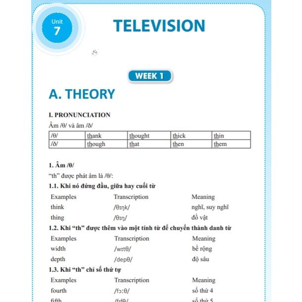 Phần Week 1: Tập trung vào việc thực hành kiến thức ngôn ngữ của các em. Các em sẽ được rèn luyện ngữ âm, từ vựng và ngữ pháp/ mẫu câu trong phần này.