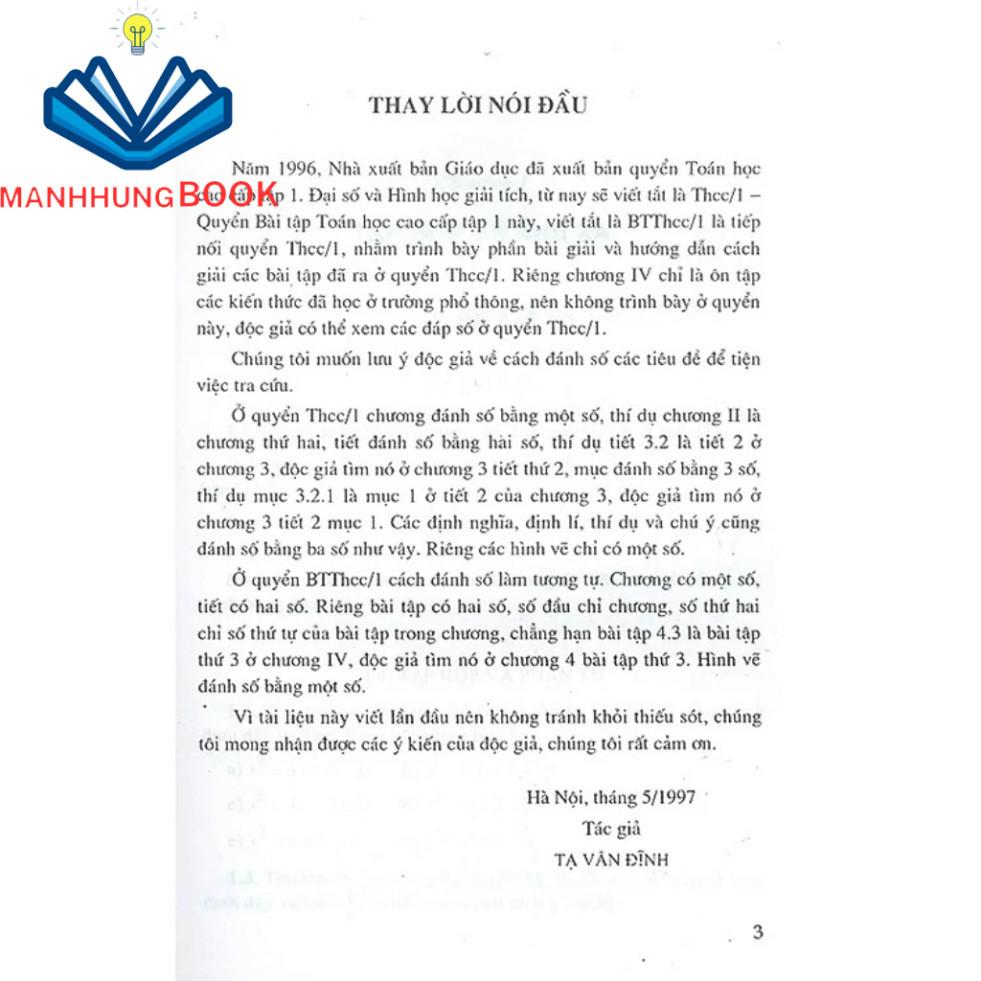 Nội dung: Cuốn "Bài tập Toán cao cấp Tập 1: Đại số và hình học giải tích” được biên soạn với mục đích nhằm trình bày và hướng dẫn giải các bài tập đã được đưa ra trong tài liệu toán học cao cấp, giúp bạn đọc dần dần hiểu được các khái niệm toán học mới, nắm được các phương pháp cơ bản và nhớ được các kết quả cơ bản về: tập hợp và ánh xạ, cấu trúc đại số, số phức, đa thức và phân thức hữu tỉ, định thức, ma trận, hệ phương trình tuyến tính, đại số vectơ và hình học giải tích, không gian vectơ, ánh xạ tuyến tính, trị riêng và vectơ riêng .