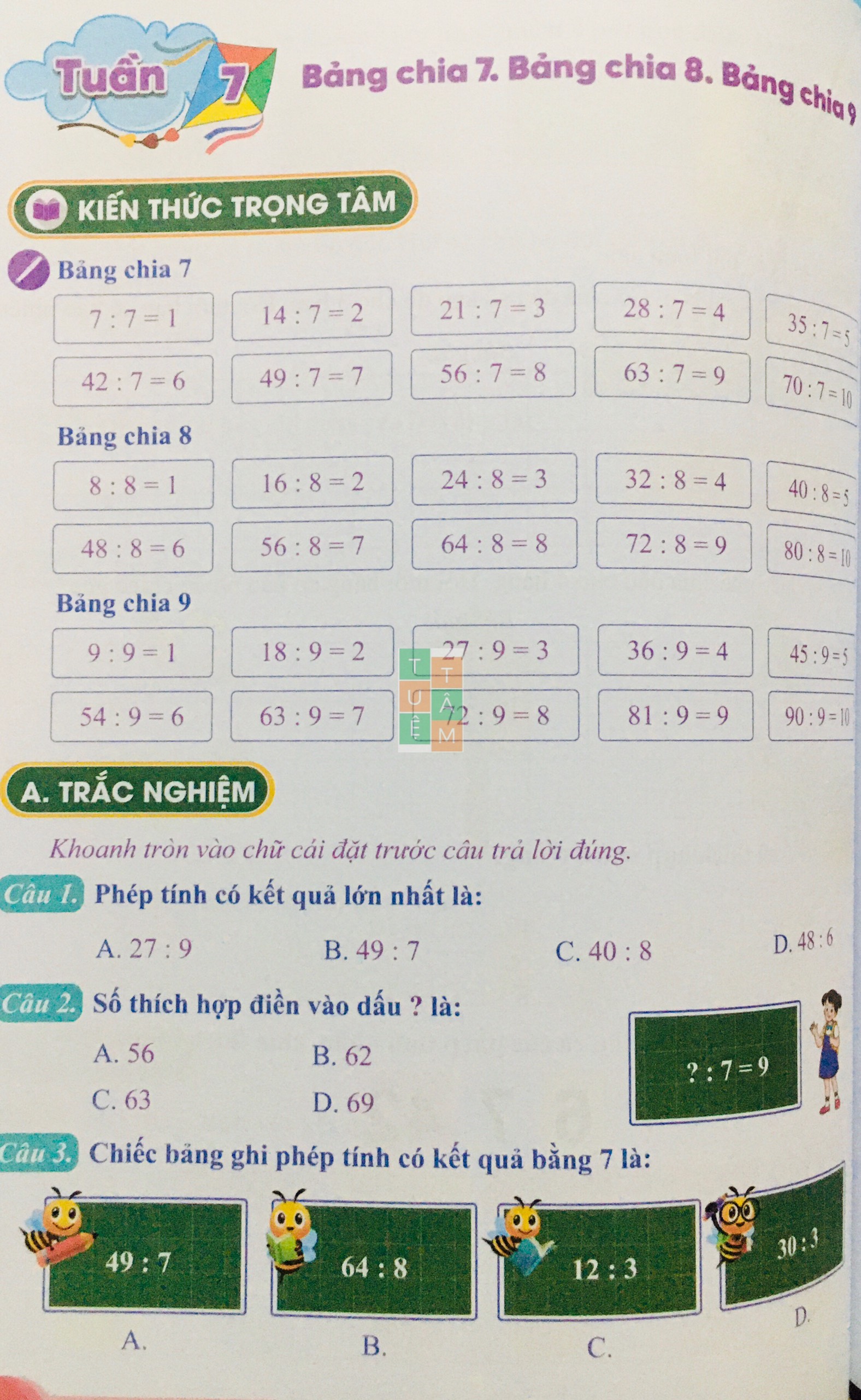 Tuần 8 - Bảng chia 8, Bảng chia 9, Luyện tập | Bài tập tuần | Toán lớp 3 | Cánh Diều | Thầy Quyền